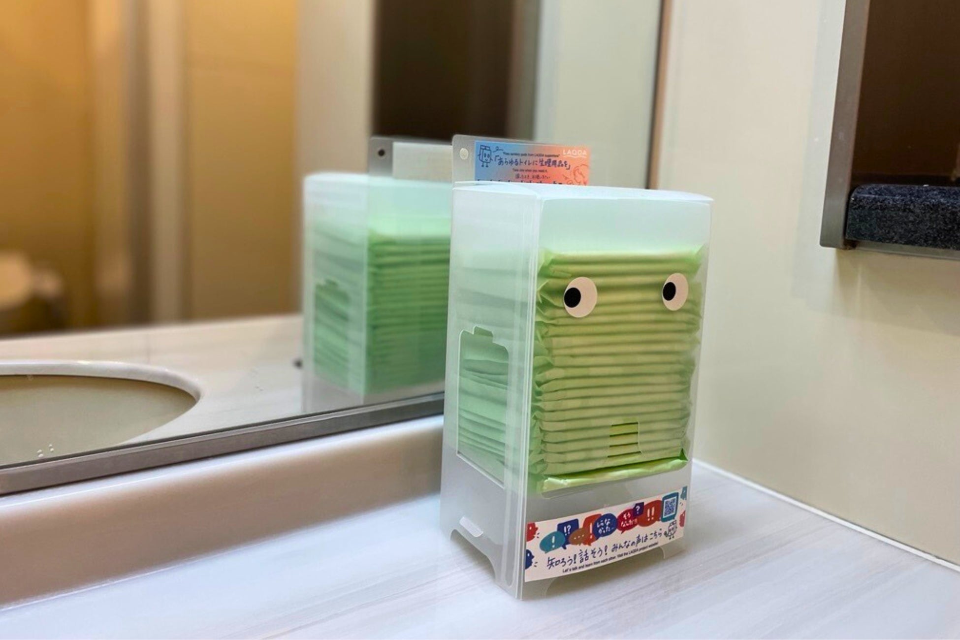 そこで、IDPはLAQDAプロジェクトに参画し、全国11か所の直営IELTS試験会場の女性トイレに生理用品ボックス「せりぽん」を設置しています。「せりぽん」は女性トイレの手洗い場に設置してあり、受験生はいつでも無償で生理用品を手にすることができます。