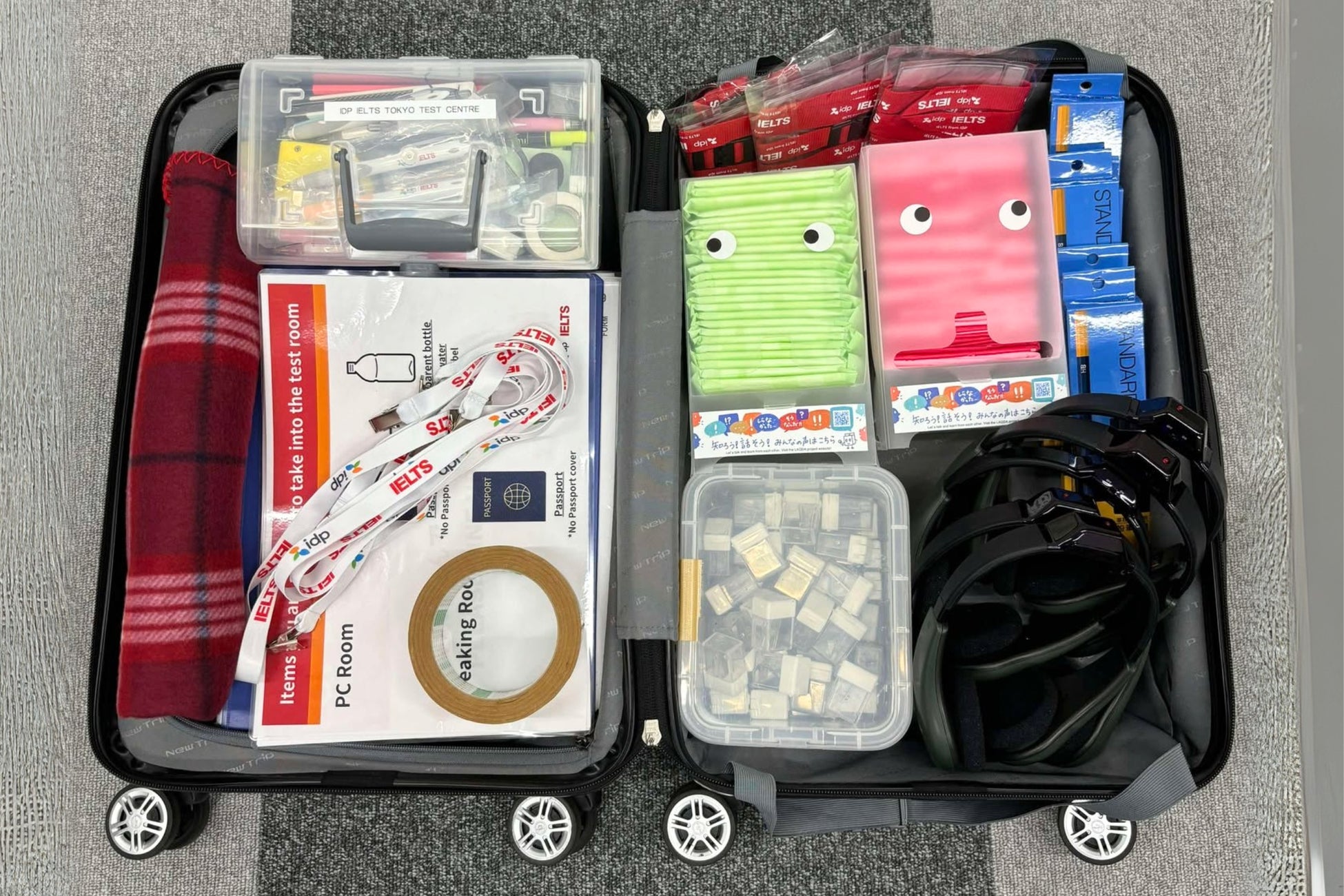 IDP IELTS東京テストセンターや大阪テストセンターには常設、地方会場へは「せりぽん」をスーツケースに入れて持参し、スタッフが試験時に会場トイレに設置しています。