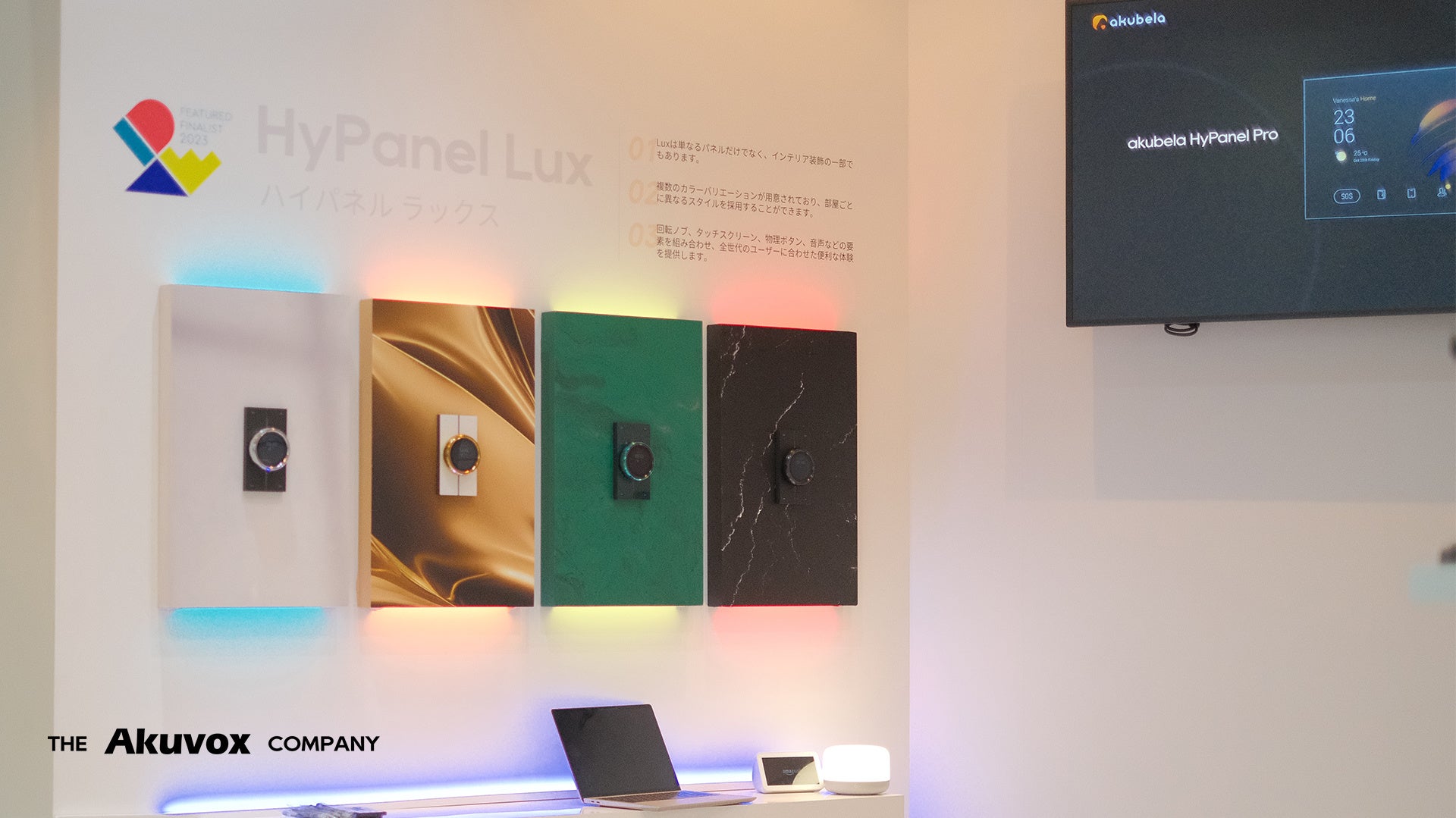 スマートホーム「akubela」のコーナーで四つのAll-in-oneコントロールパネル、「HyPanel Supreme」「HyPanel Pro」「HyPanel Plus」「HyPanel Lux」を展示いたしました。各パネルは異なるサイズで、ユーザーが自身の空間に最適なものを選択できるようになっています。これにより、美しさと機能性のバランスを保ちつつ、スマートホーム体験をさらにパーソナライズできます。これらのパネルを利用することで、電動カーテンの開閉から照明、既存の家電、スマートロックの解錠、音声アシスタントへの対応まで、家庭内の各種デバイスを一つのコントロールパネルで一括制御することが可能です。