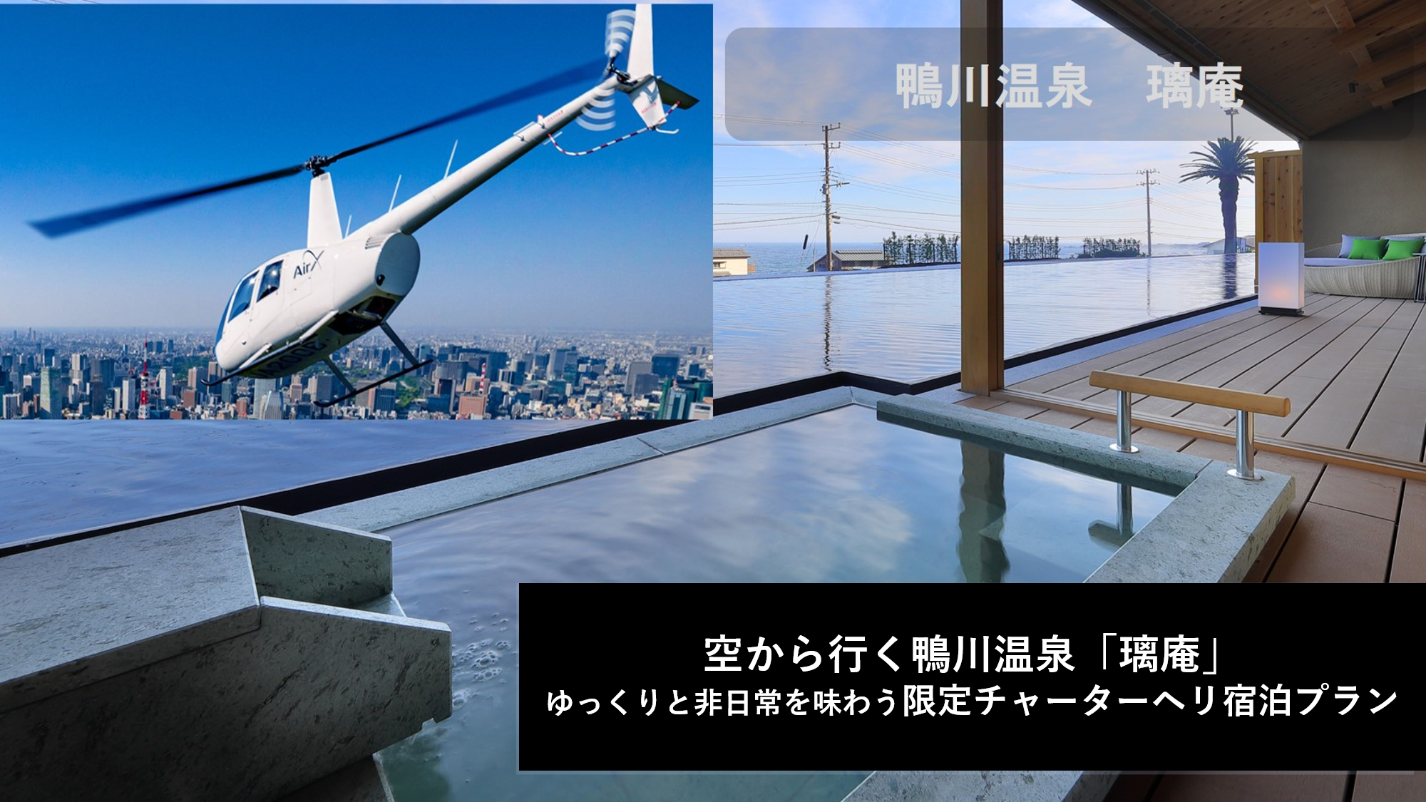 空から行く鴨川温泉「璃庵」ゆっくりと非日常を味わう限定チャーターヘリ特別宿泊プランと遊覧プラン