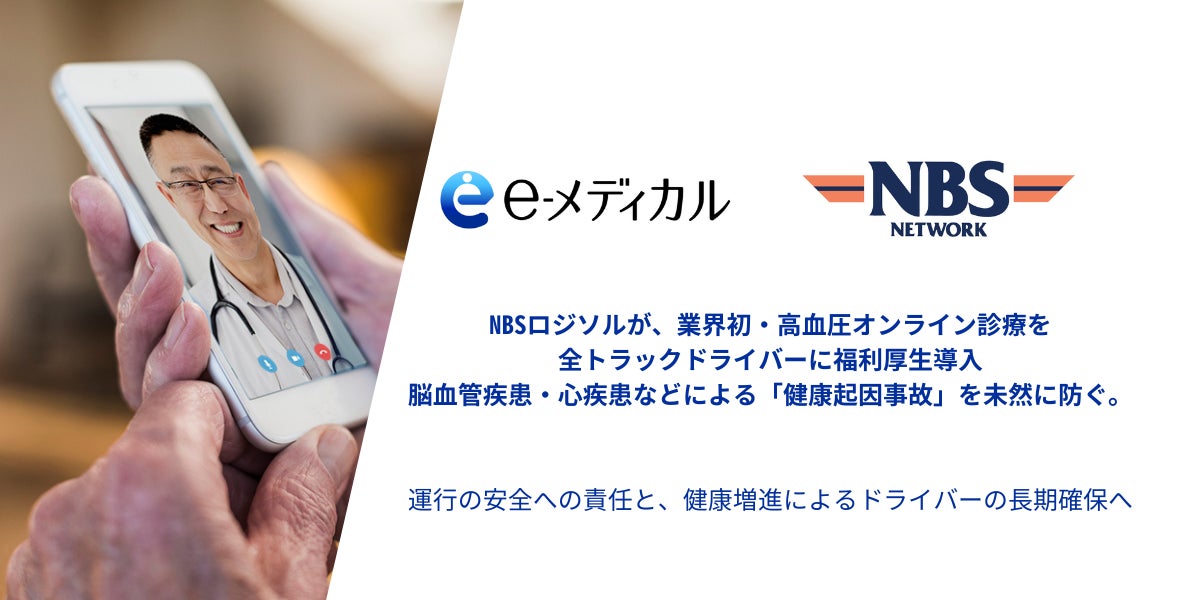 株式会社刀(大阪府大阪市 代表取締役CEO森岡毅)の子会社であるイーメディカルジャパン株式会社(東京都千代田区 代表取締役 塩谷さおり、以下イーメディカルジャパン)と、日本全国に40拠点、計800台以上のトラック等運輸車両で全国の物流を支える総合ロジスティクス企業、株式会社NBSロジソル(大分県日田市、 代表取締役社長 河野逸郎、以下NBSロジソル)は、業界で初めて高血圧オンライン診療サービスを所属する全ドライバーに福利厚生として導入開始します。
