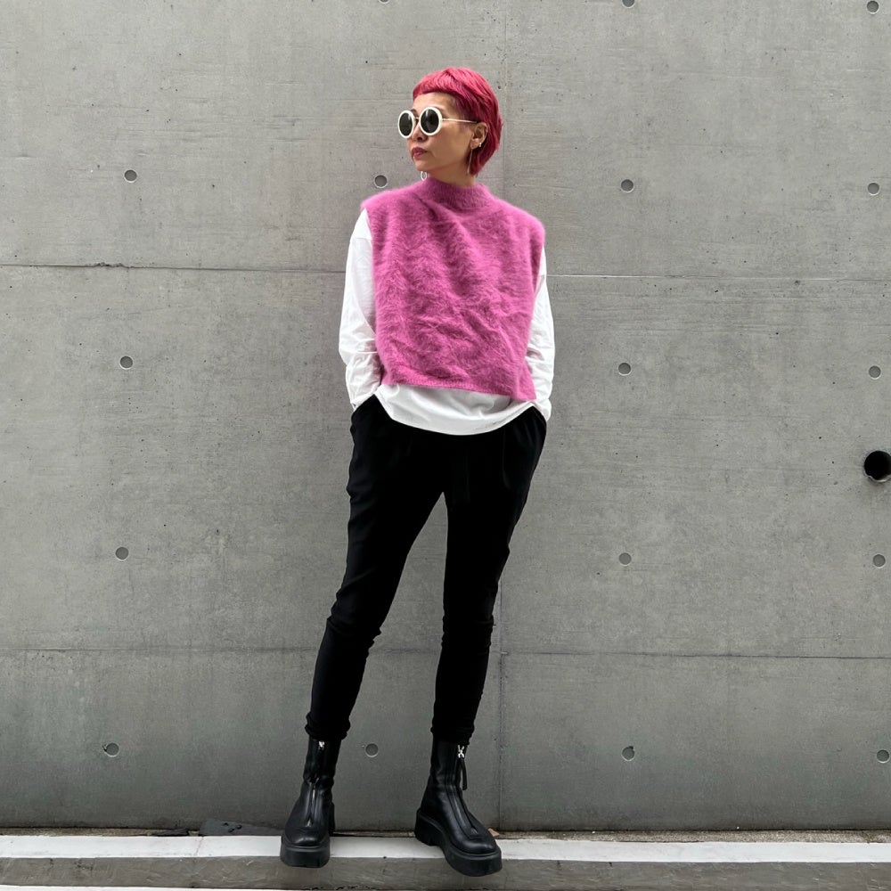 プライベートでは40代に入ってから出産を経験し、年齢を重ねたいま、凛としたかっこよさをベースにしながらも、よりリアルに、そして着心地のよいリアルウエアをデザインしています。