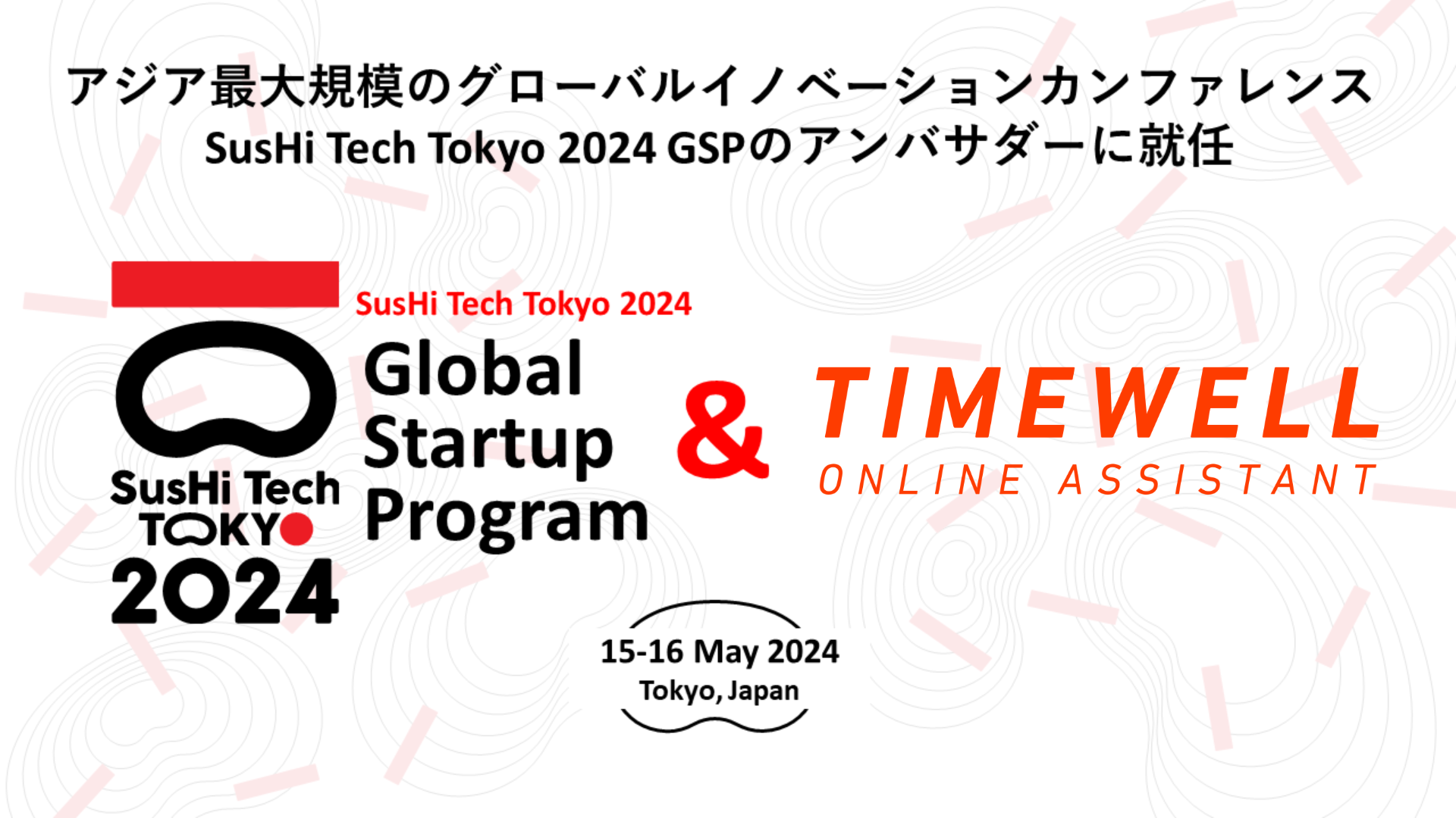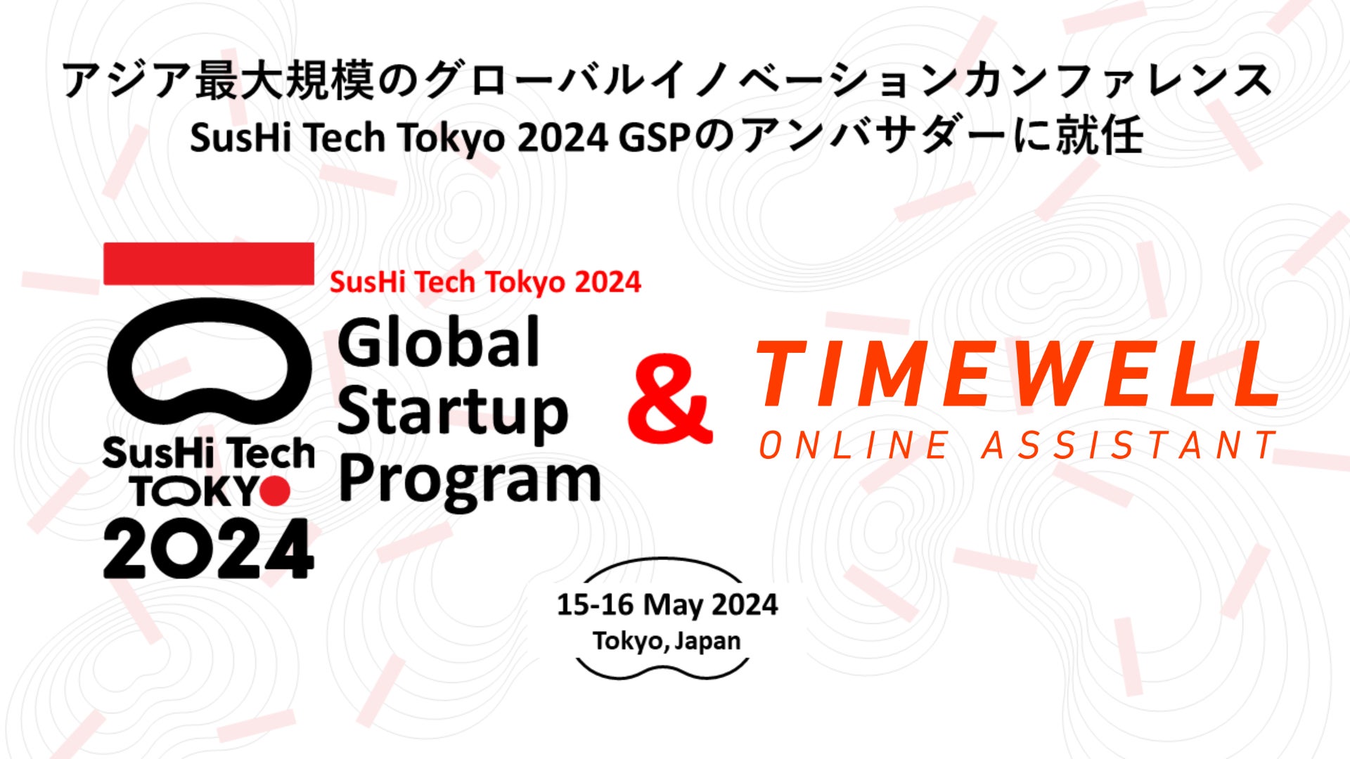 株式会社TIMEWELL(本社:神奈川県横浜市、代表取締役 濱本隆太、以下「当社」)は、2024年5月15日(水)~16日(木)に日本・東京にて開催される、グローバルイノベーションカンファレンス「SusHi Tech Tokyo 2024 Global Startup Program(スシテックトウキョウ2024 グローバルスタートアッププログラム)」のアンバサダー就任が決まりましたのでお知らせいたします。当社ビジョンである「世界NO.1の挑戦インフラを創る」の実現のためにも全力で推進してまいります。