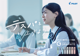 商品のアイコンでもあるグラファイト(GRAPHITE)のブランドマーク“G”は、中高生の成長と、テストなど本番に立ち向かう人を支える、「成長(Growth)」を表現したデザインに変更しました。