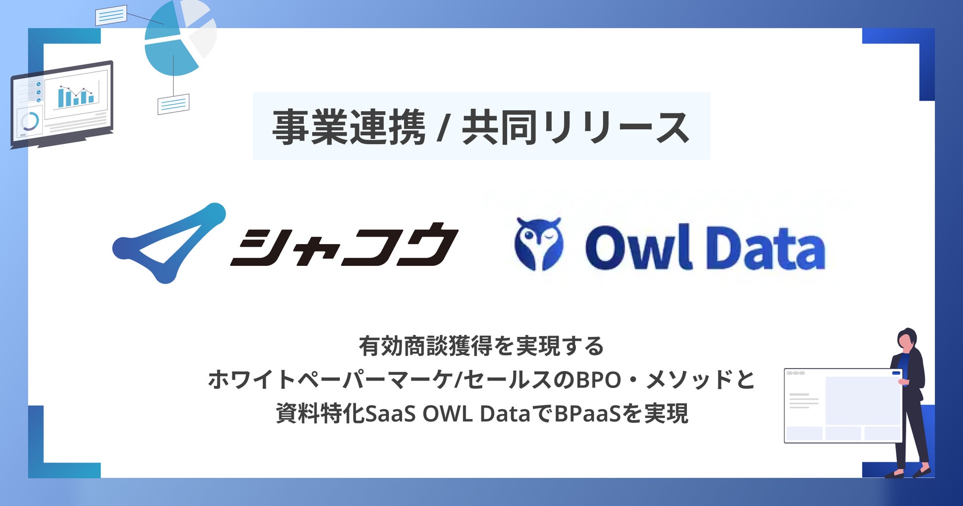 株式会社シャコウ × 株式会社Owl Dataと事業連携。有効商談獲得を実現するホワイトペーパーマーケ/セールスのBPO・メソッドと資料特化SaaS Owl DataでBPaaSを実現。