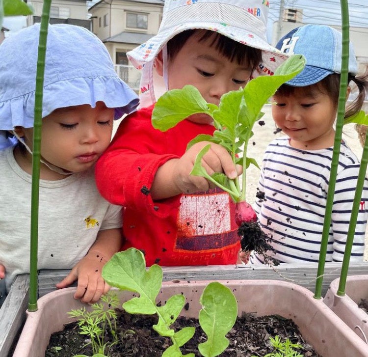 地球にやさしい材料でできた植木鉢を手形で飾ってラディッシュを育てよう。<先着50名><0才から>