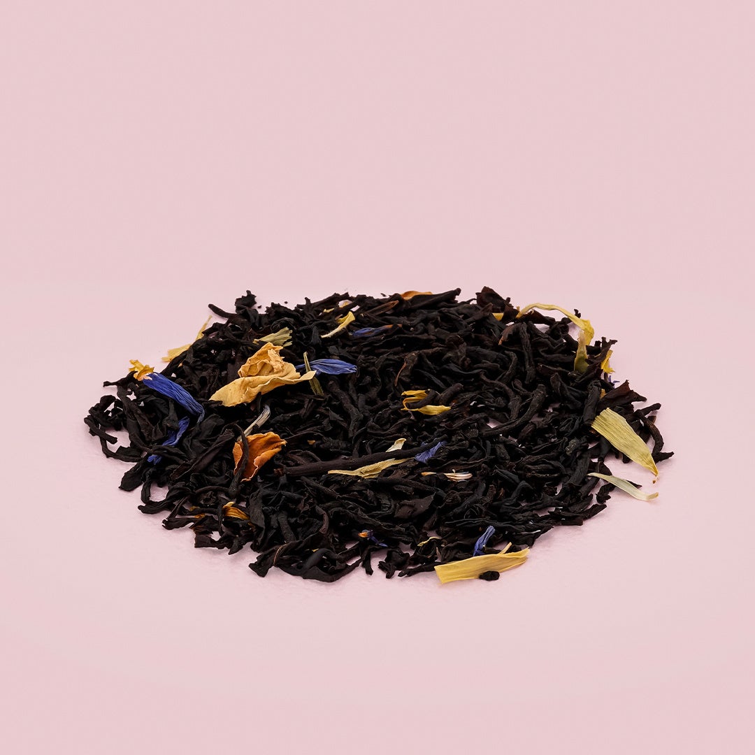 【フレーバードティー】原材料名: 紅茶(スリランカ)、ドライパパイヤ(パパイヤ・砂糖)、マリーゴールド、コーンフラワー、ローズピンク、ローズレッド/ 香料、酸味料(クエン酸) 内容量: 25g(2.5g×10個ティパック)