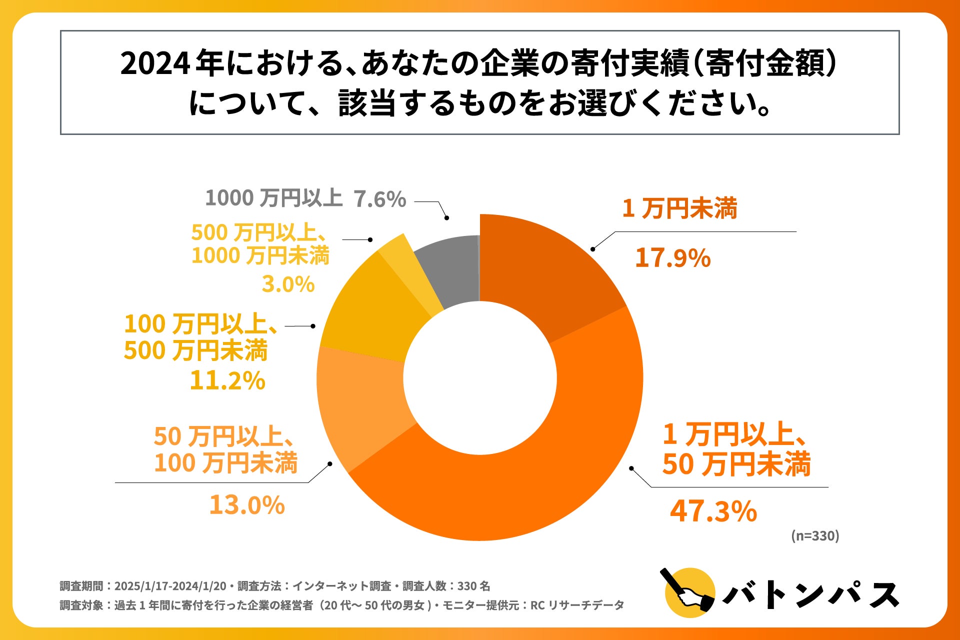 ・2024年の年間寄付実績は100万円未満であった企業が約8割