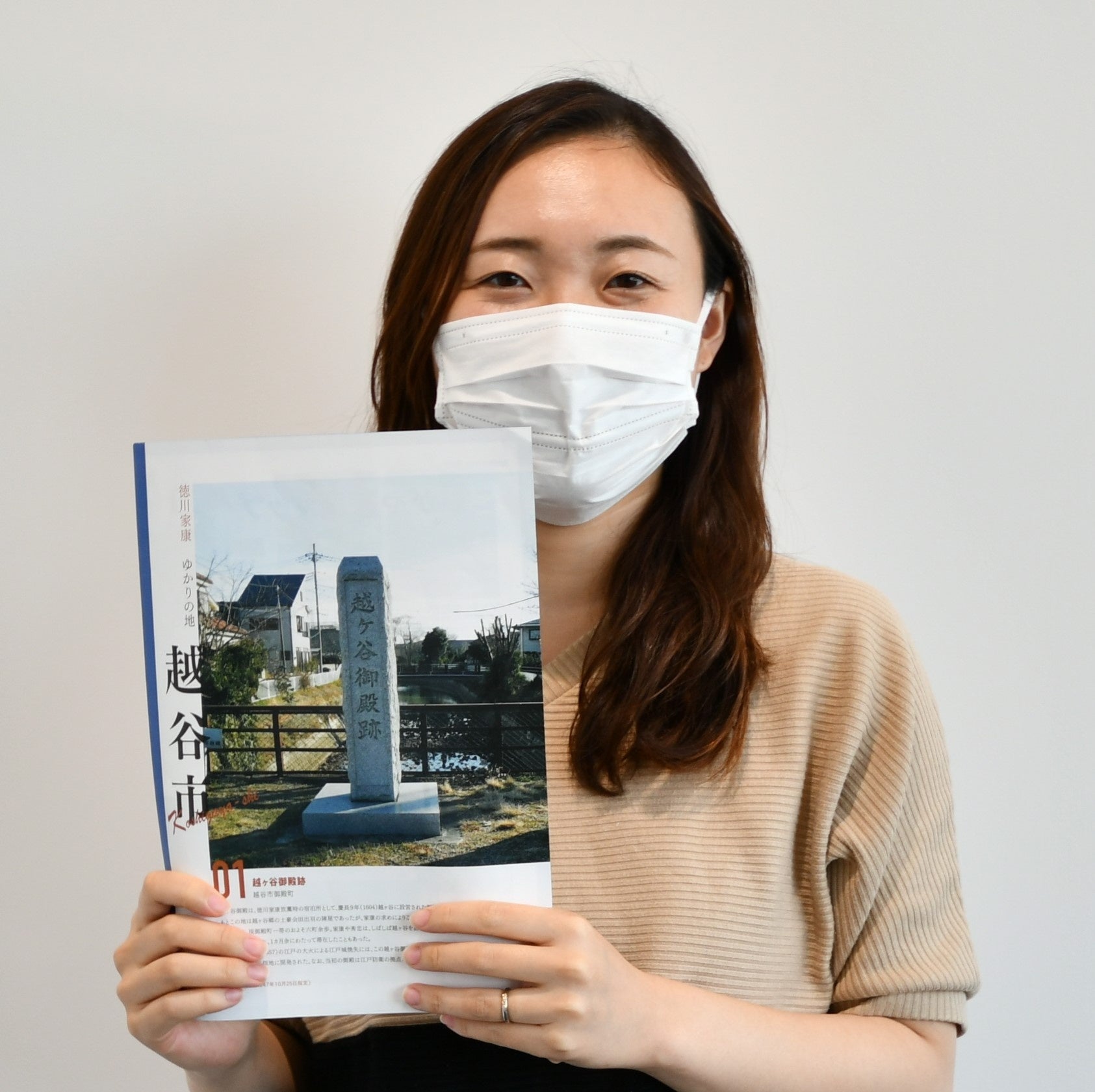 (「徳川家康ゆかりの地 越谷市」に関するリーフレットを配布しています)