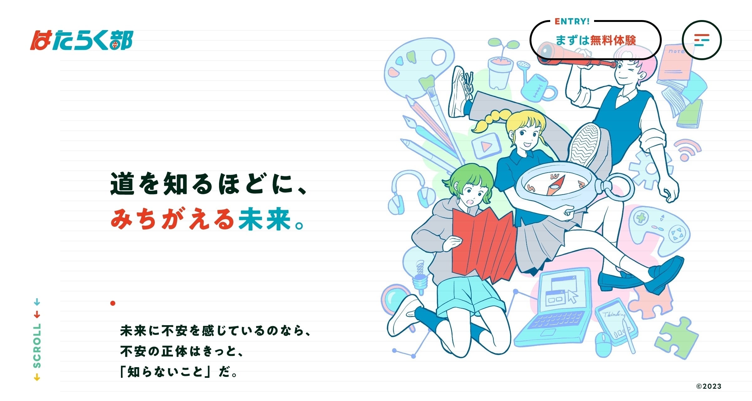 今回の公式サイトのリニューアルでは、多種多様なテーマについて、みんなでワイワイとゲーム感覚で楽しみながら、将来について考えを深める体験ができる「はたらく部」の世界観を表現しました。