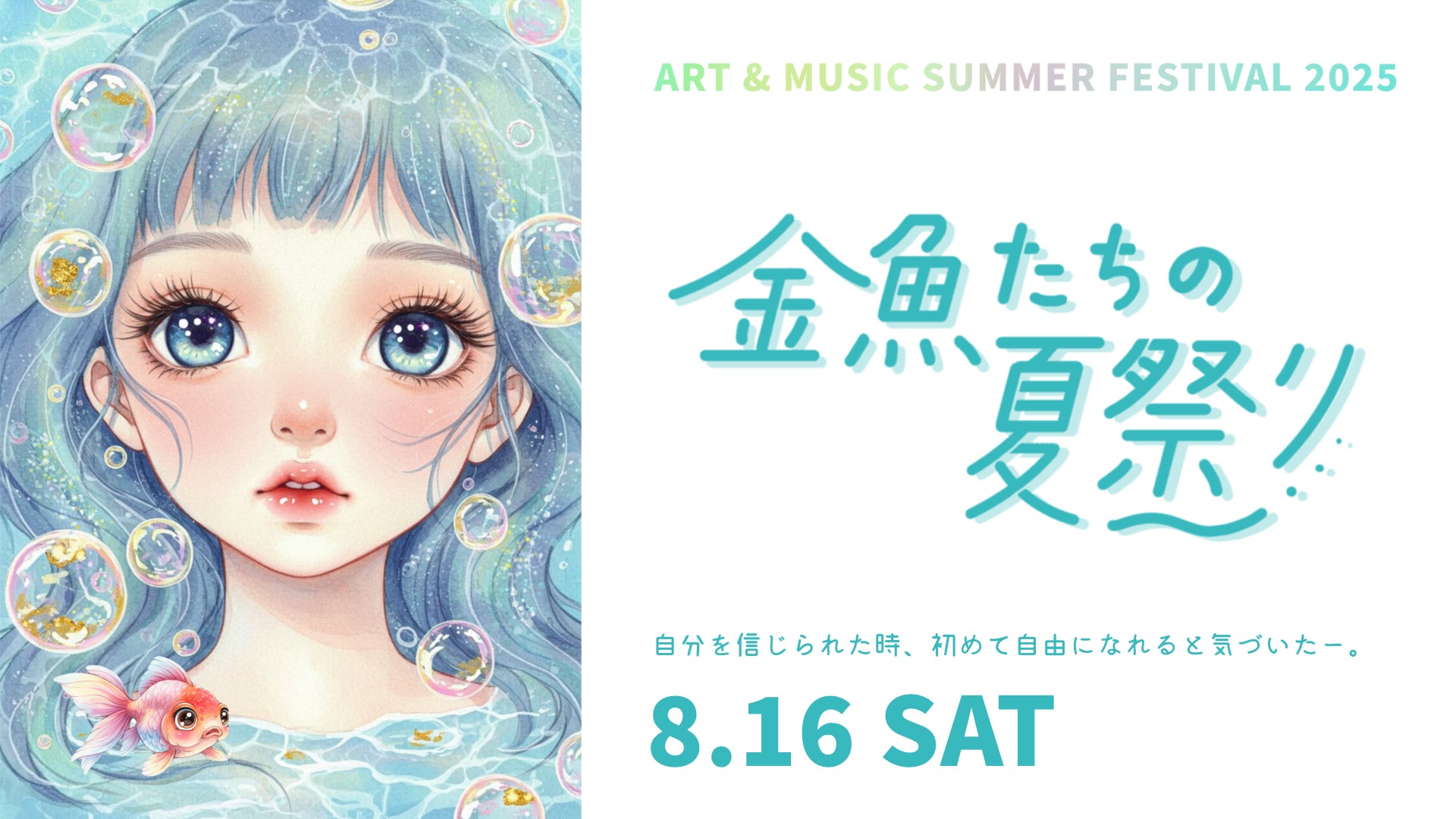 「私らしく、泳いでいこう」を合言葉に、コロナ禍に活動を開始したアート&ミュージックプロジェクト「金魚たちの夏祭り」を運営する、つながるサポート株式会社(本社:東京都世田谷区、代表取締役:矢野裕紀)は、2025年8月16日(土)に、下北沢の室内エンターテインメントスペース「ADRIFT」にて開催することを決定している「金魚たちの夏祭り2025」の入場チケットの販売を開始しました。