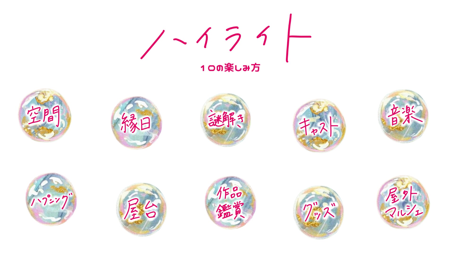 会場に足を踏み入れた時、そこに広がるのは幻想的できらめく海の世界。来場者がアートな縁日を楽しみ、謎を解いていたら…本当にやりたかったことが見つかっちゃった!そんな面白い仕掛けも散りばめています♡