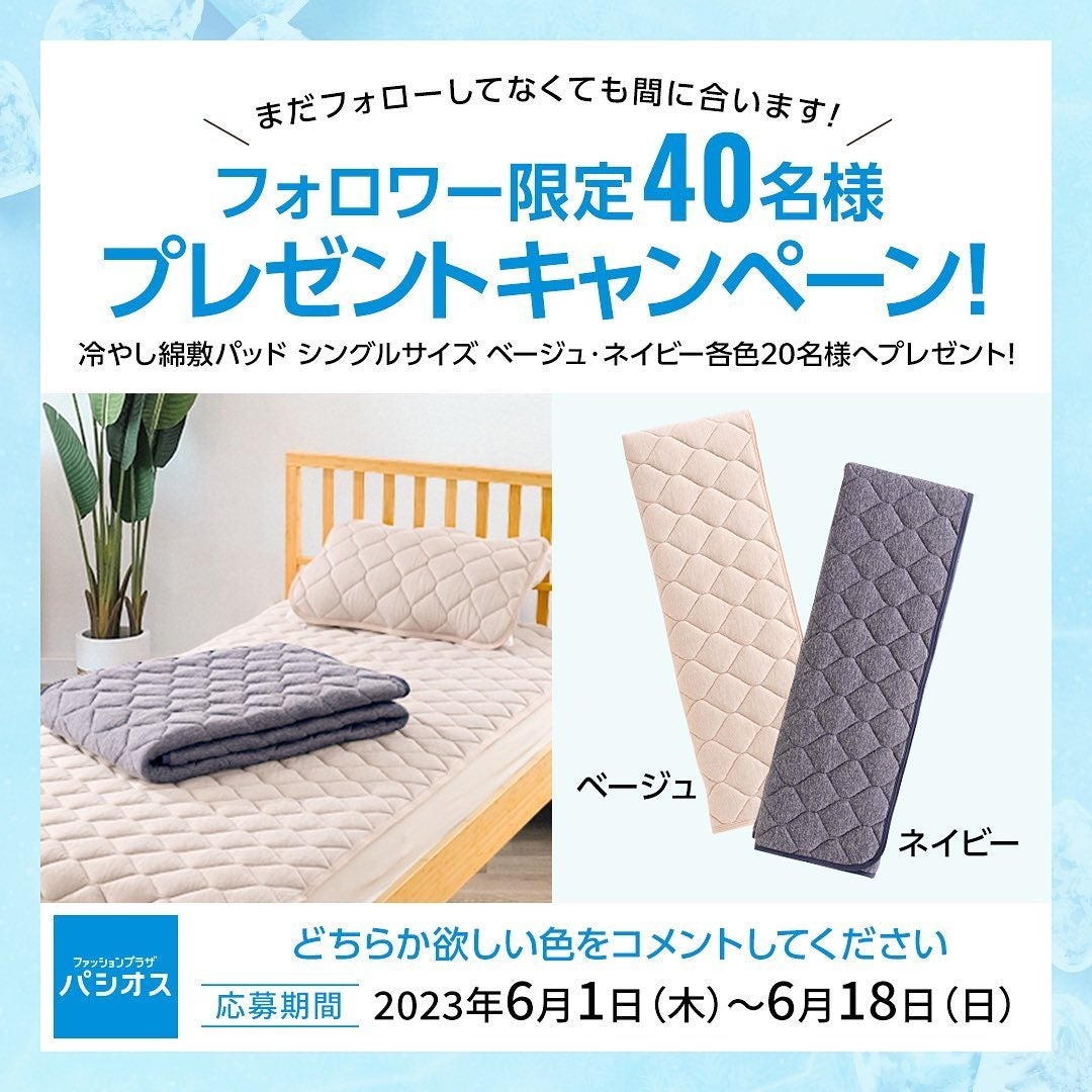 パシオス公式インスタグラムのフォロワー様限定で「抽選で40名様に冷やし綿冷感敷パッドをプレゼント!」キャンペーンを開催しております。(期間中、新たにフォローしていただくお客様もキャンペーンの対象となります)