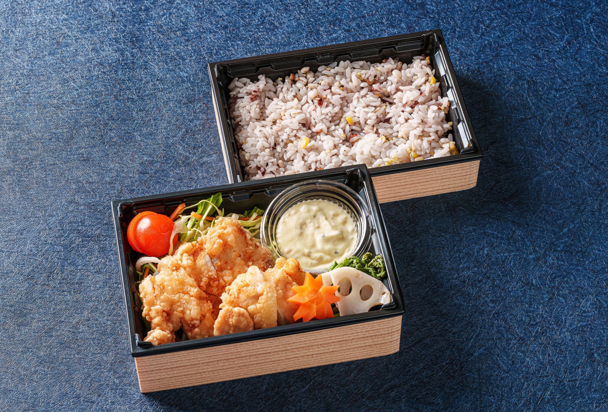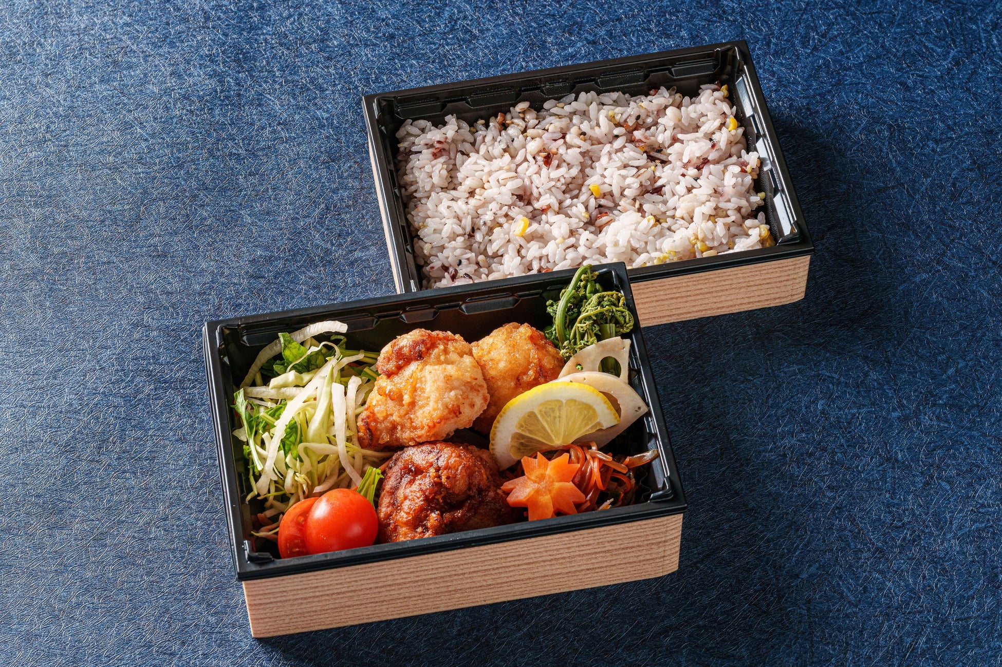 ご注文いただいてから調理する揚げたての唐揚を詰め込んだ、樋口伝統の唐揚げ弁当。オフィスや外出先でのランチとしておすすめです。カラダにやさしい雑穀米との組み合わせをお愉しみください。