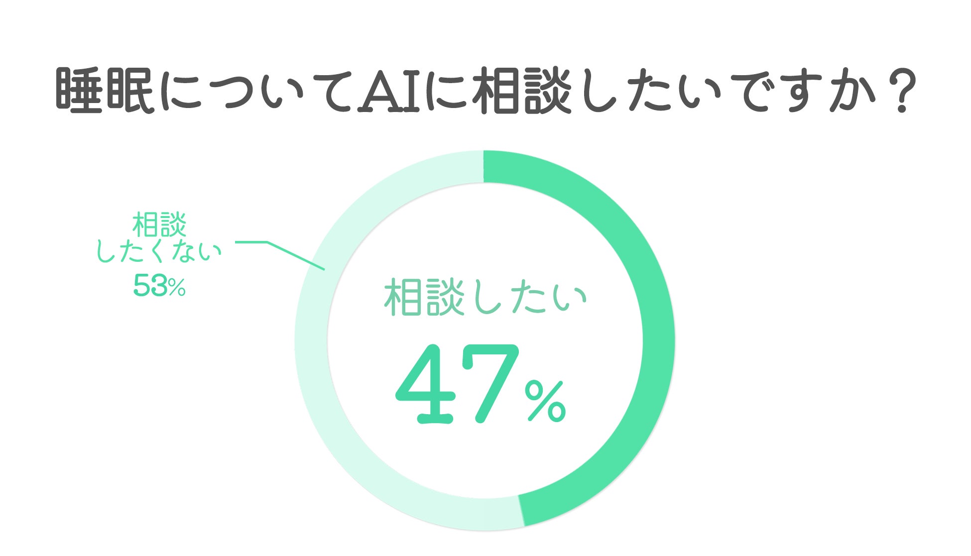 なお、47%と半数近くの人が「睡眠についてAIに相談したい」と回答しました。AIカウンセリングの利用機会があれば、睡眠の悩みを解消する手段の1つになると推察されます。