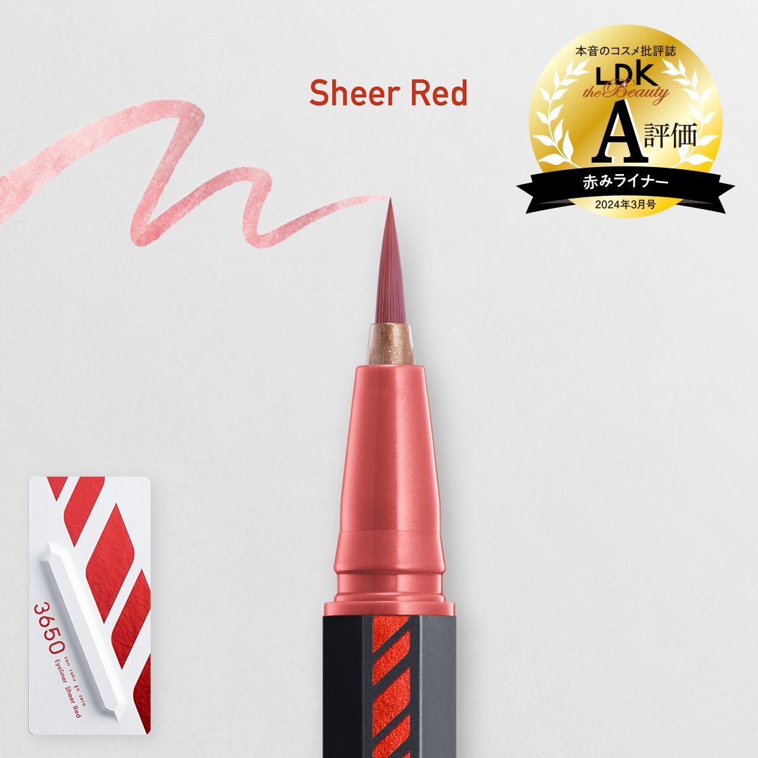 今回「赤みライナー部門」でA評価を獲得した『3650 リキッドアイライナー シアーレッド』は、内側からにじみ出るようなじゅわっとした血色感をプラスするカラー。レッドなのに奇抜すぎず、こっそり血色感を仕込むことで自由自在な透け感アレンジを楽しめます。