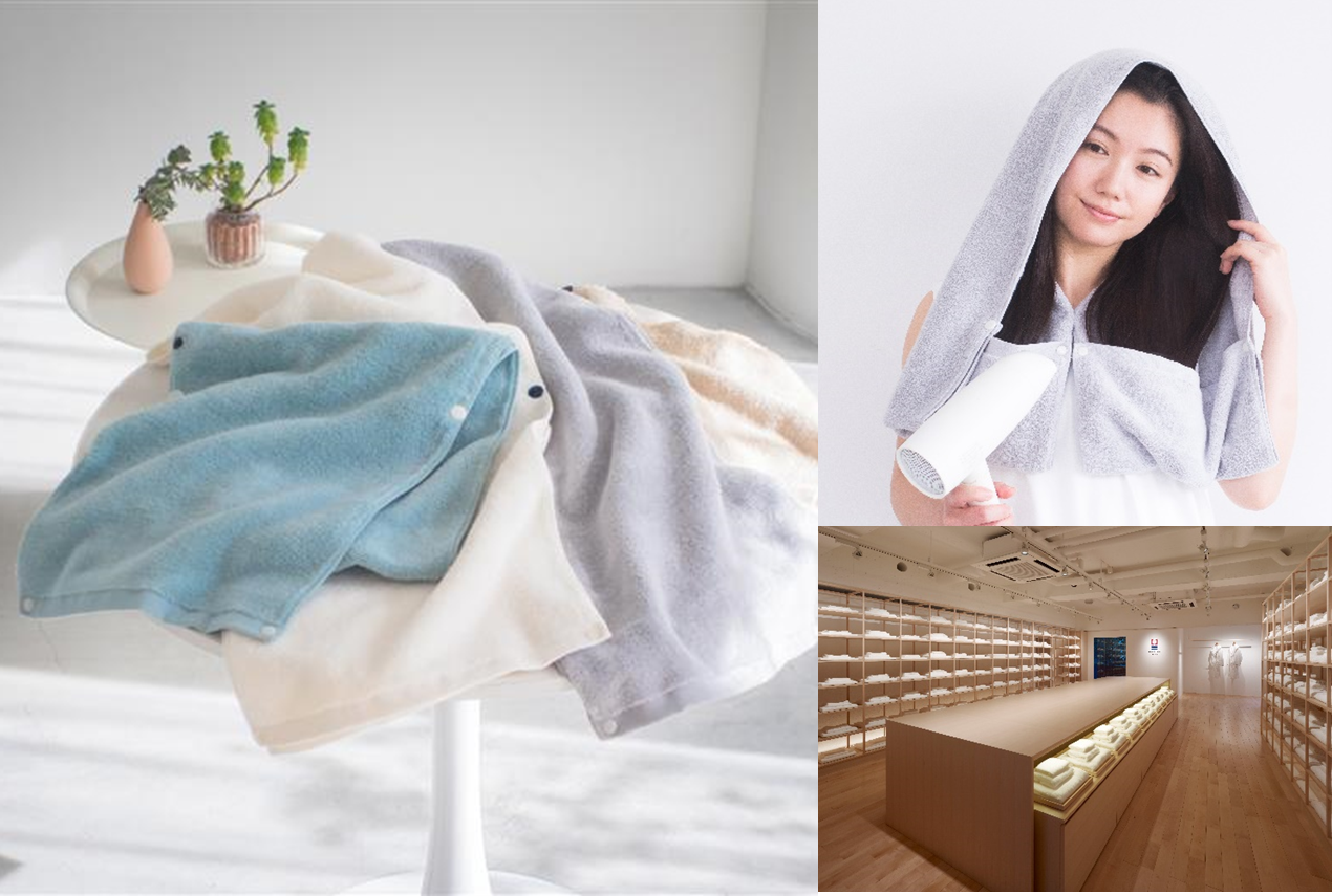 マイクロファイバー並みの吸水性を誇る、日本製綿100%のヘアドライ専用今治タオル「ハヤズキン」も展示販売!
