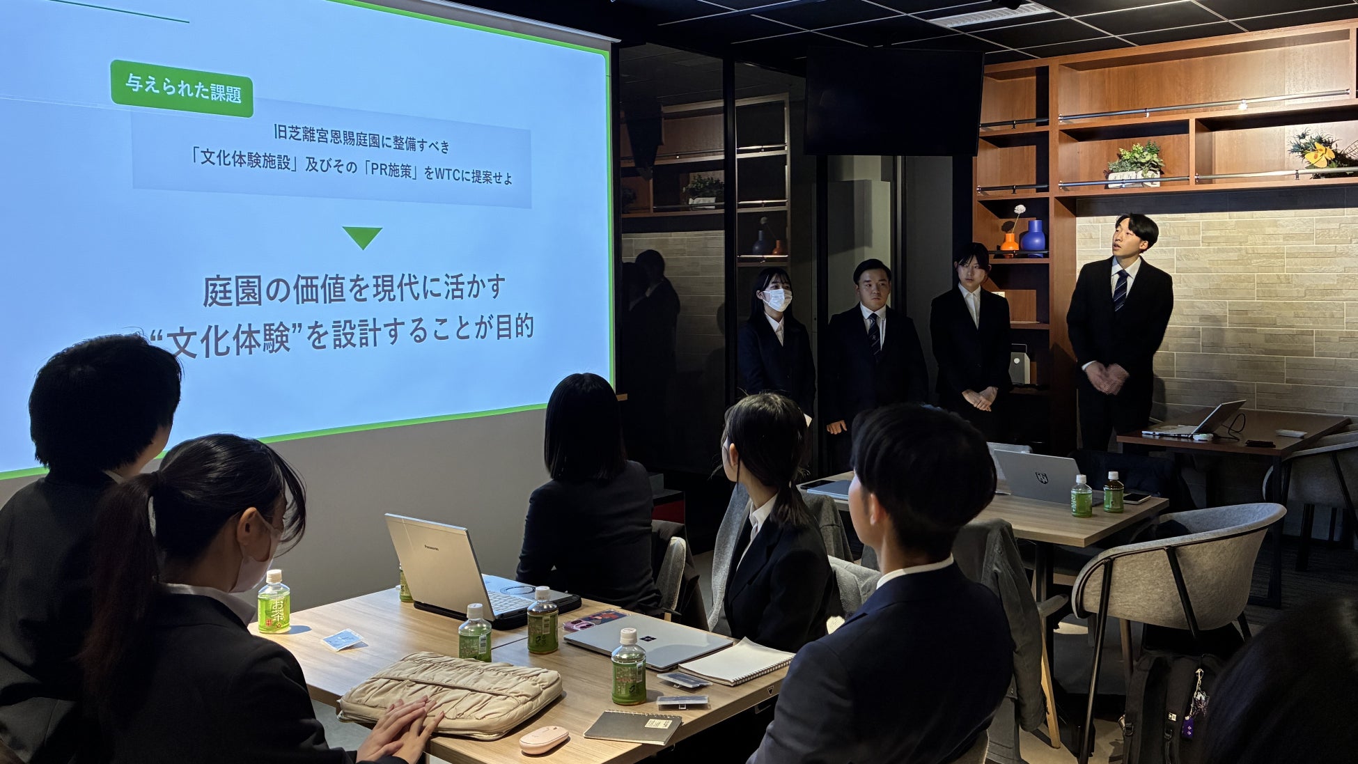 株式会社世界貿易センタービルディング(以下WTC)および一般社団法人浜松町芝大門エリアマネジメントは、東京都市大学 都市生活学部との産学連携プログラムとして、旧芝離宮恩賜庭園を舞台にした文化体験施設およびPR施策の提案をテーマに、最終審査会を開催し、学生による提案の中から各賞を決定しました。
