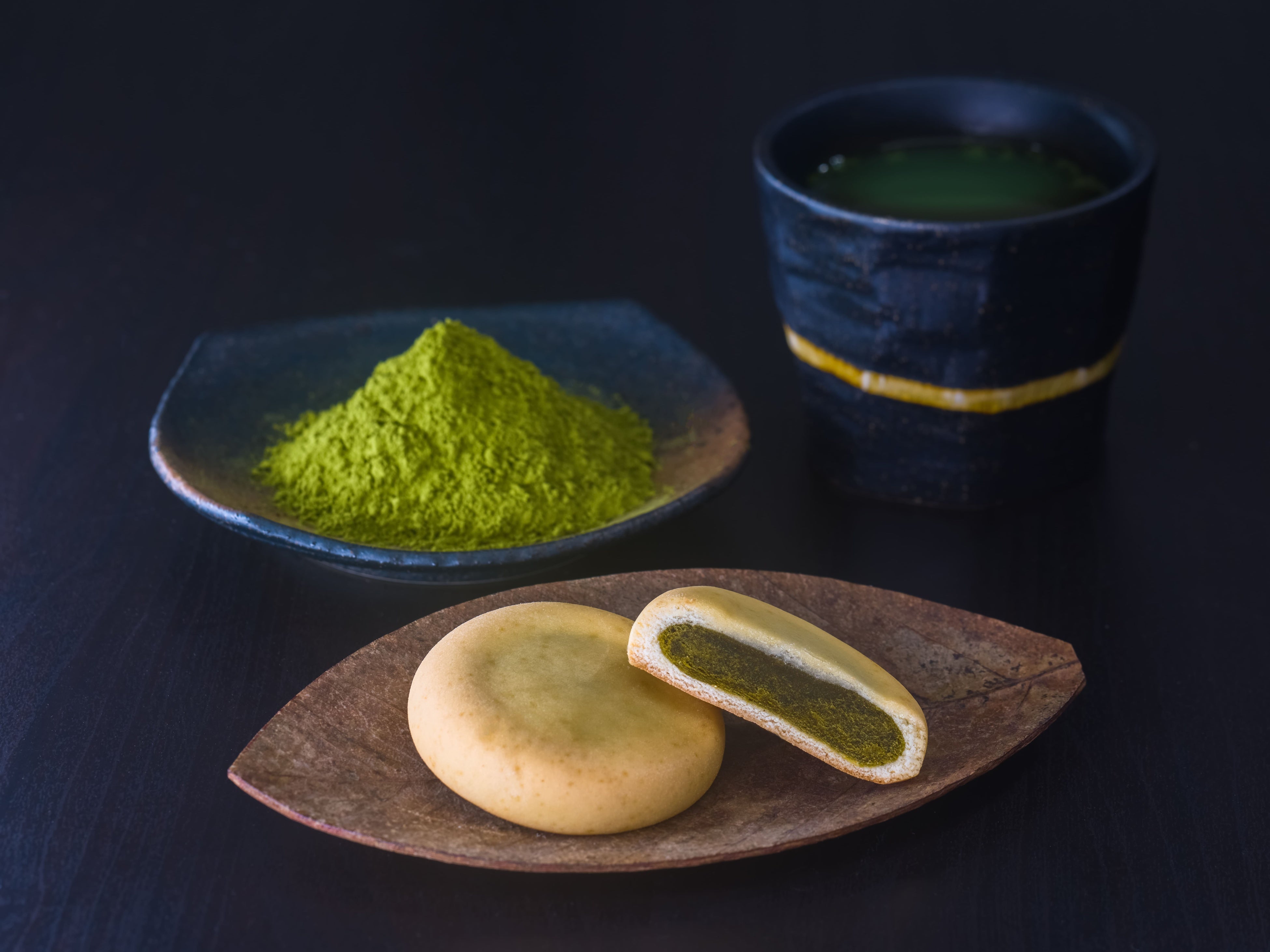 京都府産宇治抹茶を使用した自家製抹茶餡は、渋みや苦味が際立つ抹茶を選定。加糖卵黄や練乳をかけ合わせて、ほろにがさと乳卵のコクがマッチした味わいに。