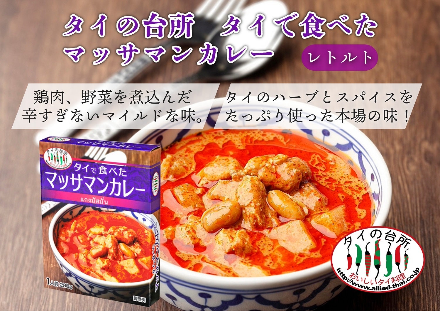 株式会社アライドコーポレーション(本社所在地:神奈川県横浜市 代表取締役社長:氏家勇祐)は、タイの台所『タイで食べたレトルトシリーズ』からマッサマンカレーを2024年9月1日(日)に新発売します。