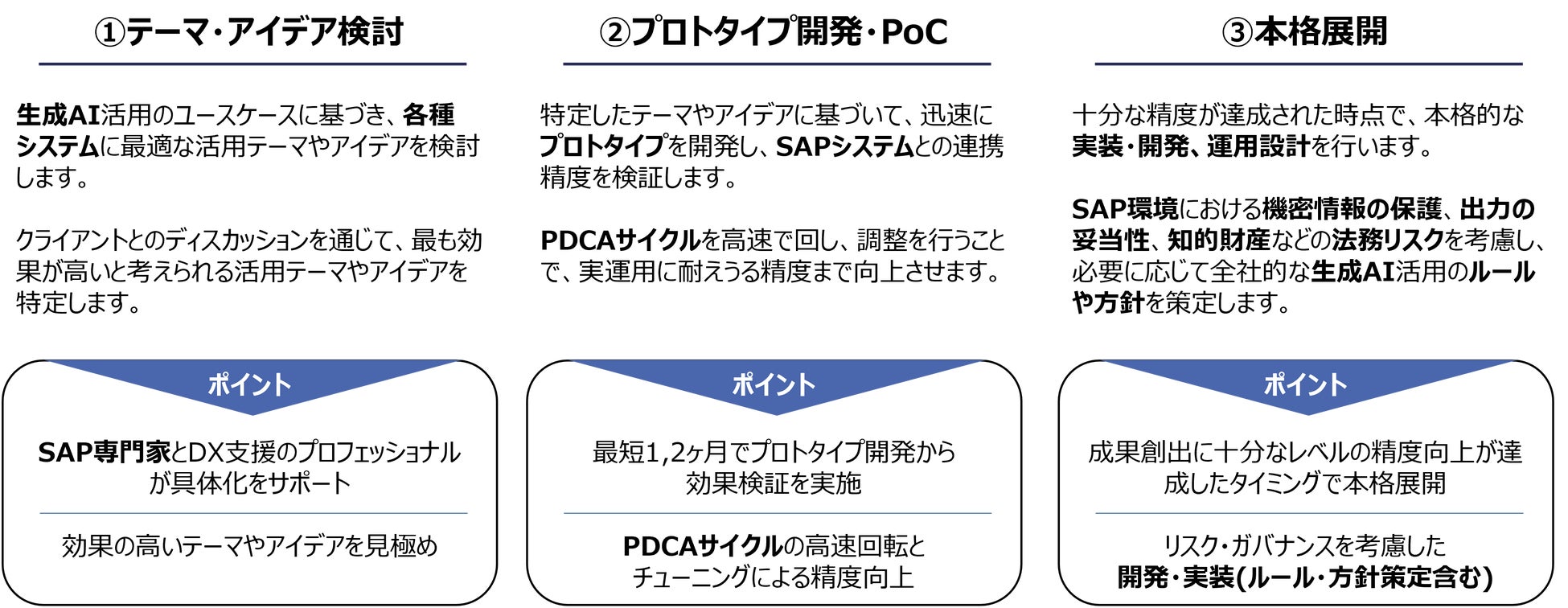 業務・ITコンサルティング業務に加え、年内に生成AIに取り組むグループ会社ARK Technologyを設立し、間接材Coupaソリューションを始めとしたERPやその周辺システムの導入サービスに生成AIを活用することで、システム導入の効率化および運用保守コストの削減を図るソリューションを開発・販売します。