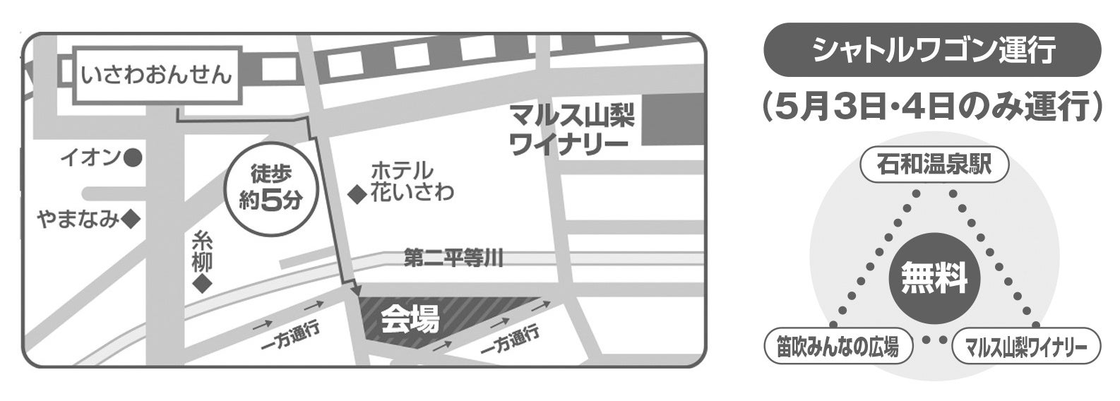 会場: 笛吹みんなの広場 〒406-0021 山梨県笛吹市石和町松本1442-3