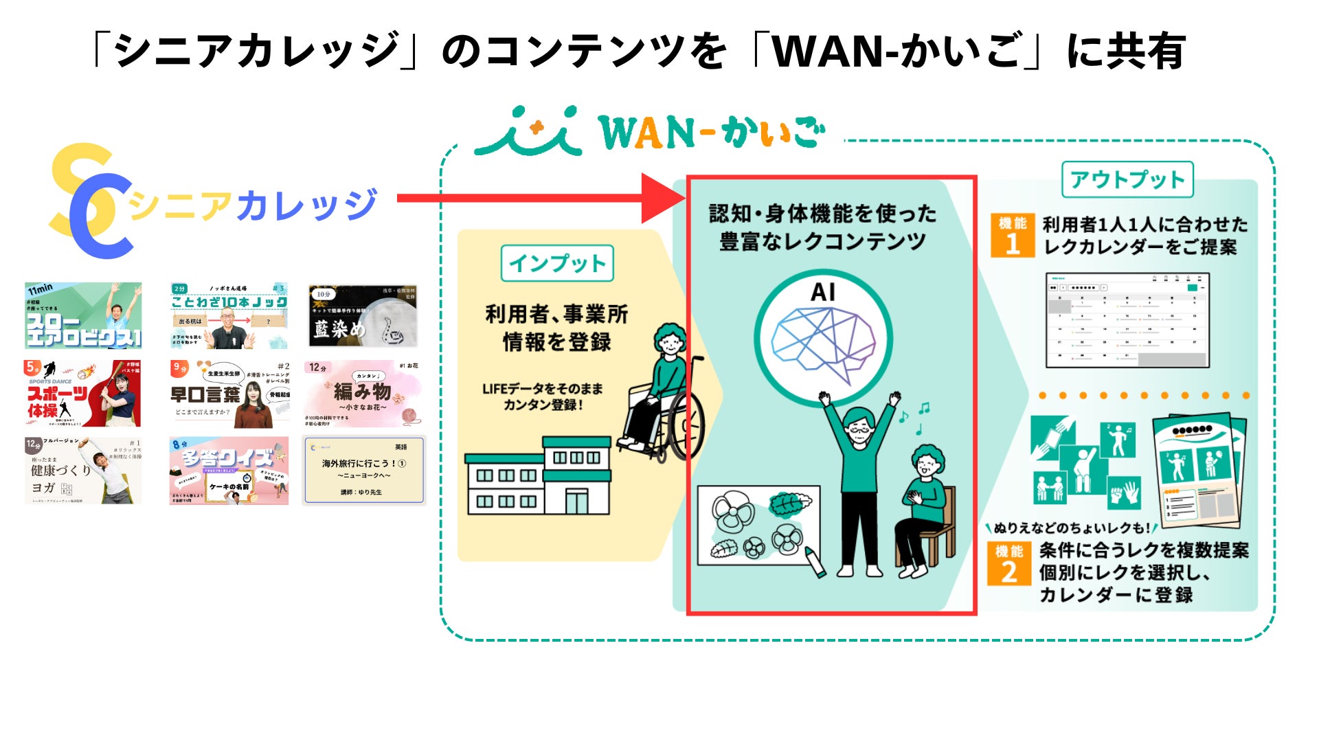 今後、TOPPAN株式会社との連携により、「WAN-かいご™」を介してシニアカレッジのプログラムが提供でき、より利用者が楽しめて、かつ認知や身体などの機能改善に資する、エビデンスのあるレクリエーションを提供する体制を構築します。