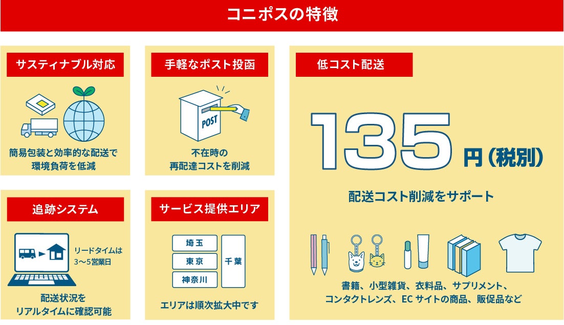 「コニポス」は、ポスト投函型の配送サービスで、小型商品の発送に最適です。