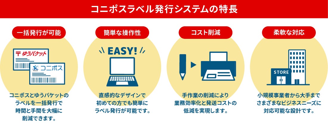 「コニポスラベル発行システム」は、コニポスとゆうパケットのラベルを一元管理できる画期的なシステムです。