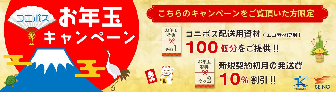 2025年1月、株式会社地区宅便(本社:東京都練馬区,代表取締役:河合秀治)は、新春のコニポスの発送体験 として、「コニポスお年玉キャンペーン」を実施することをお知らせします。