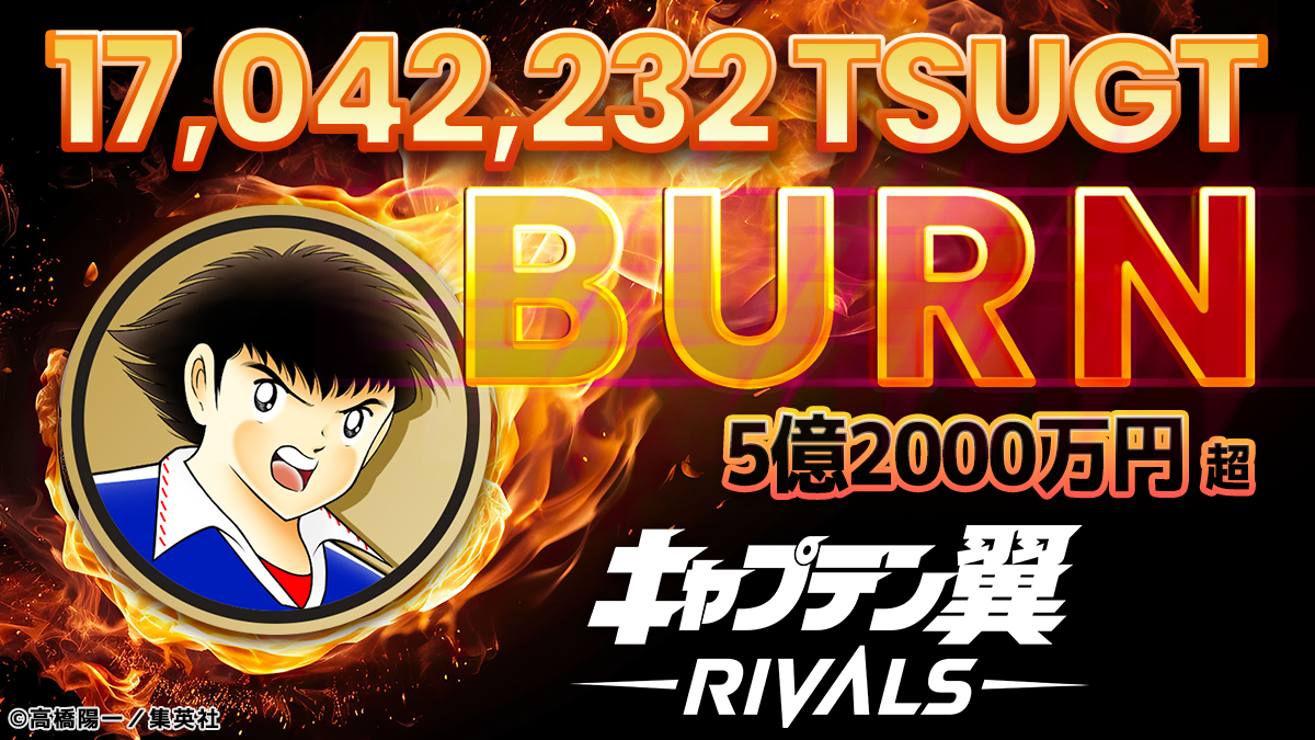 新感覚Web3ゲーム『キャプテン翼 -RIVALS-』のトークン『$TSUGT』約5億2千万円分のバーンを実施。今後は四半期に一度のバーン実施を検討