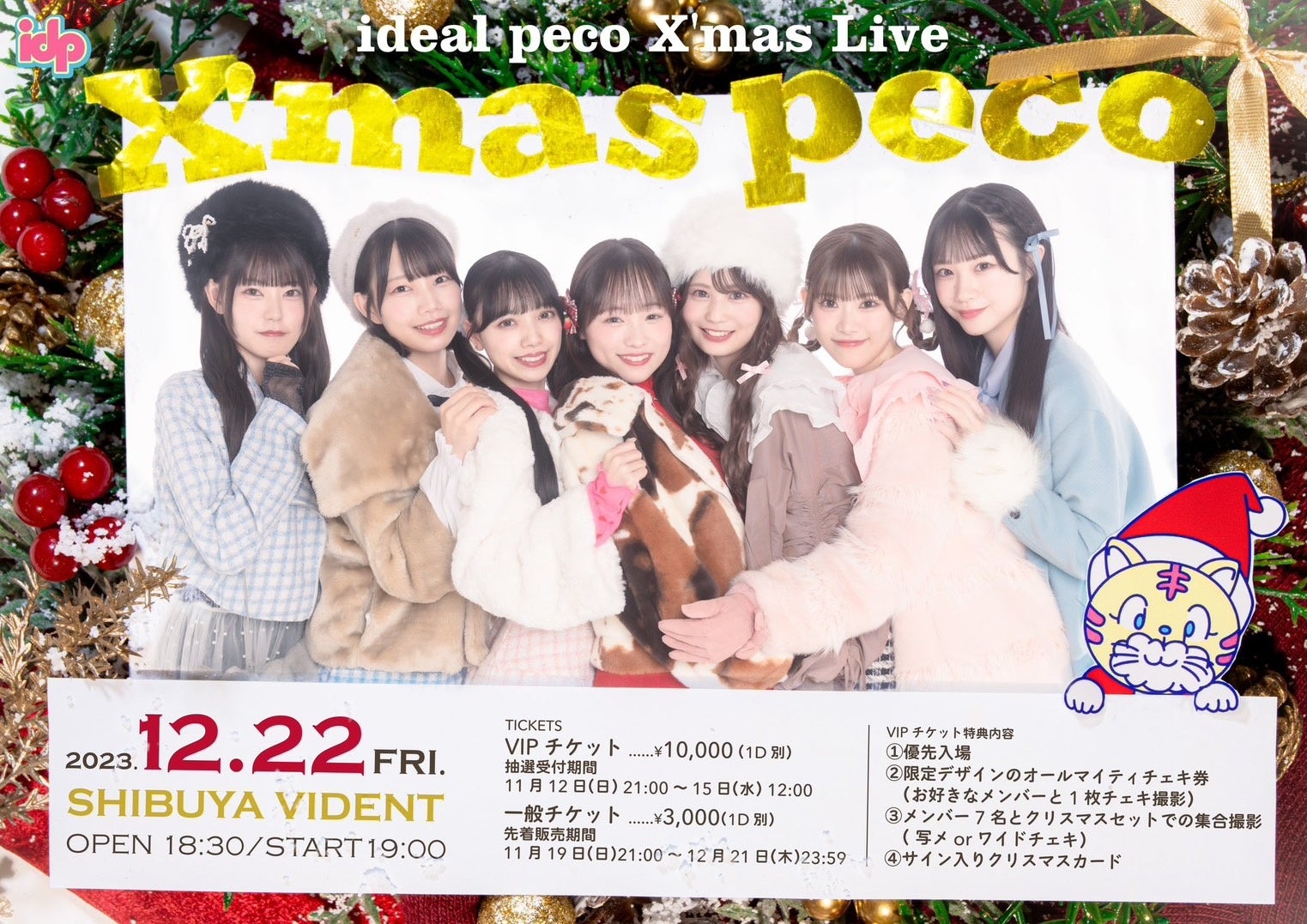 この曲は2023年12月22日(金)にSHIBUYA VIDENTで開催されるideal peco初のX'mas Live『X'mas peco』にてクリスマス限定衣装で初披露される。VIPチケットはすでに完売しており現在一般チケットのみ発売中。見逃せないライブになりそうだ。