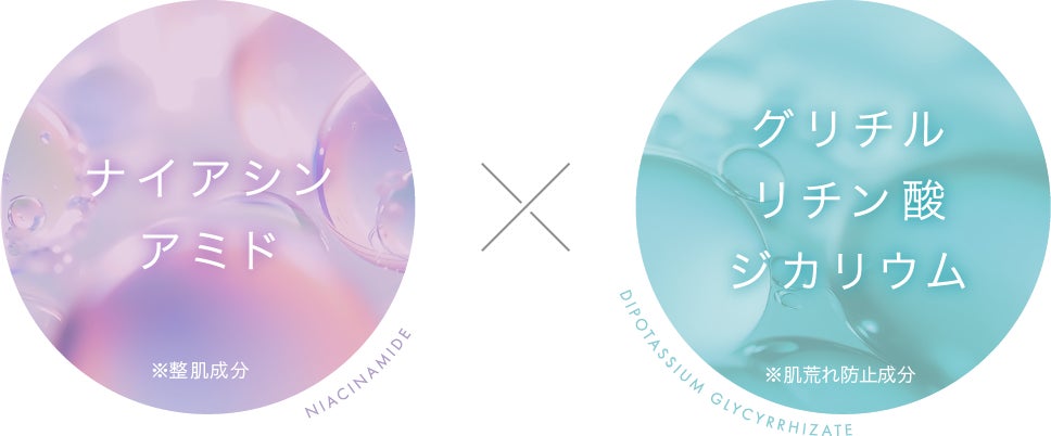 「ナイアシンアミド」「グリチルリン酸」を配合して、日中の紫外線を防ぐとともに、ヒアルロン酸、コラーゲン配合で長時間うるおい、肌荒れ予防にも効果的となっています。