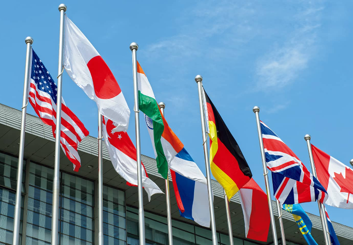 当社の「ナショナルフラッグ」部門では、国賓(各国の大統領や国王など)来日時や国際的な会議(サミットなど)、スポーツイベント(オリンピック・ワールドカップなど)の際に国旗を提供し、掲揚・撤去業務を行っています。国旗はその国の象徴であり、国旗に敬意を表することは国際社会の基本的なマナーです。当社では正確なデザイン・カラー・サイズ等を各国に確認して国旗を制作しています。また、国旗の掲揚についても優先順位・左右の別など詳細なルールがあります。重要な外交行事において、このような国際儀礼上のルール(プロトコール)を遵守できていないと、国際的な問題に発展しかねません。当社は長年にわたり外務省様等から委託を受けて、国と国との交流を⽀える仕事に誇りを持ってナショナルフラッグ事業に取り組んでいます。