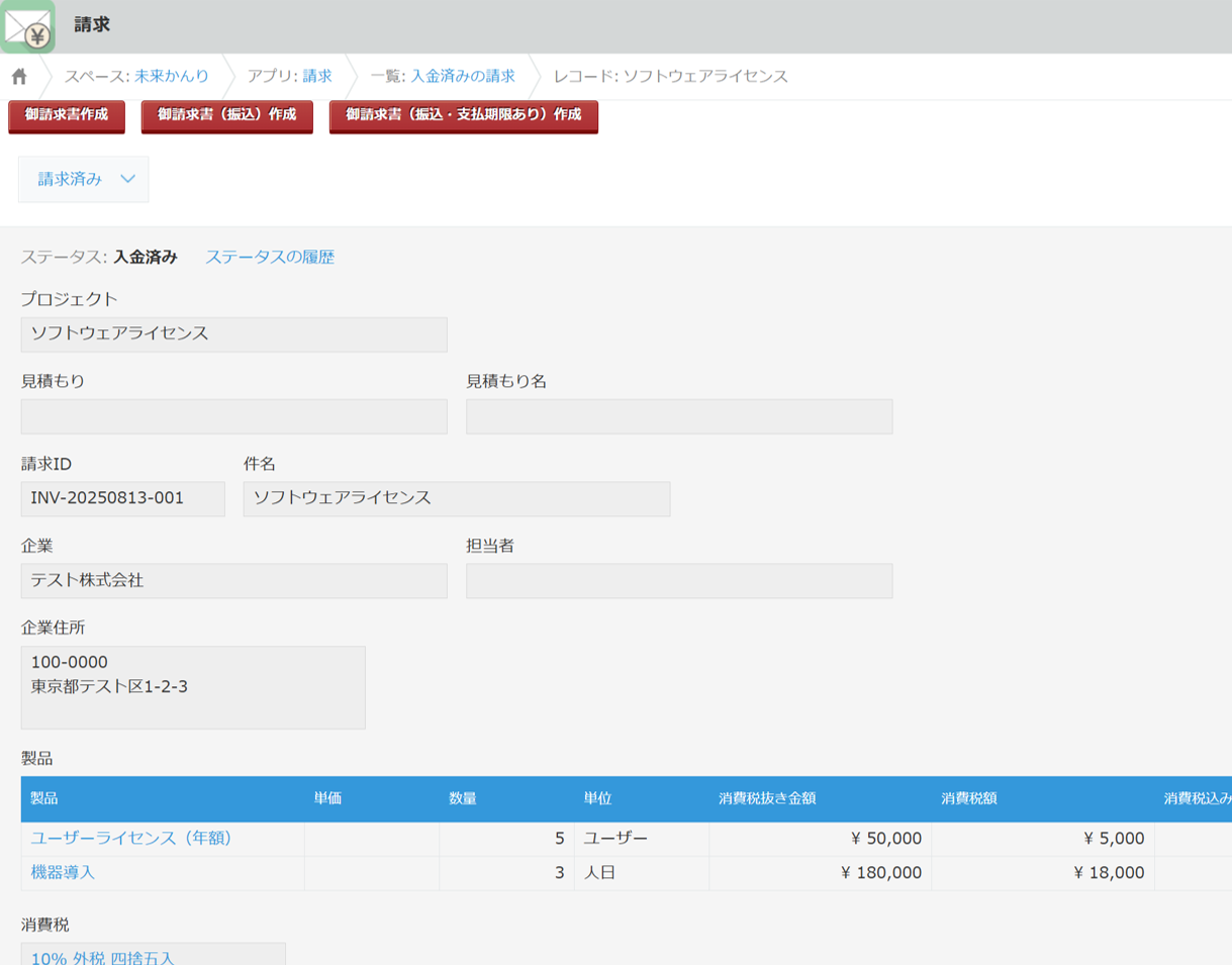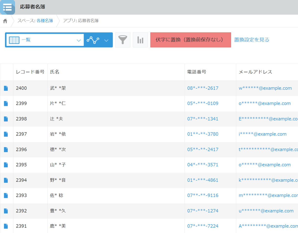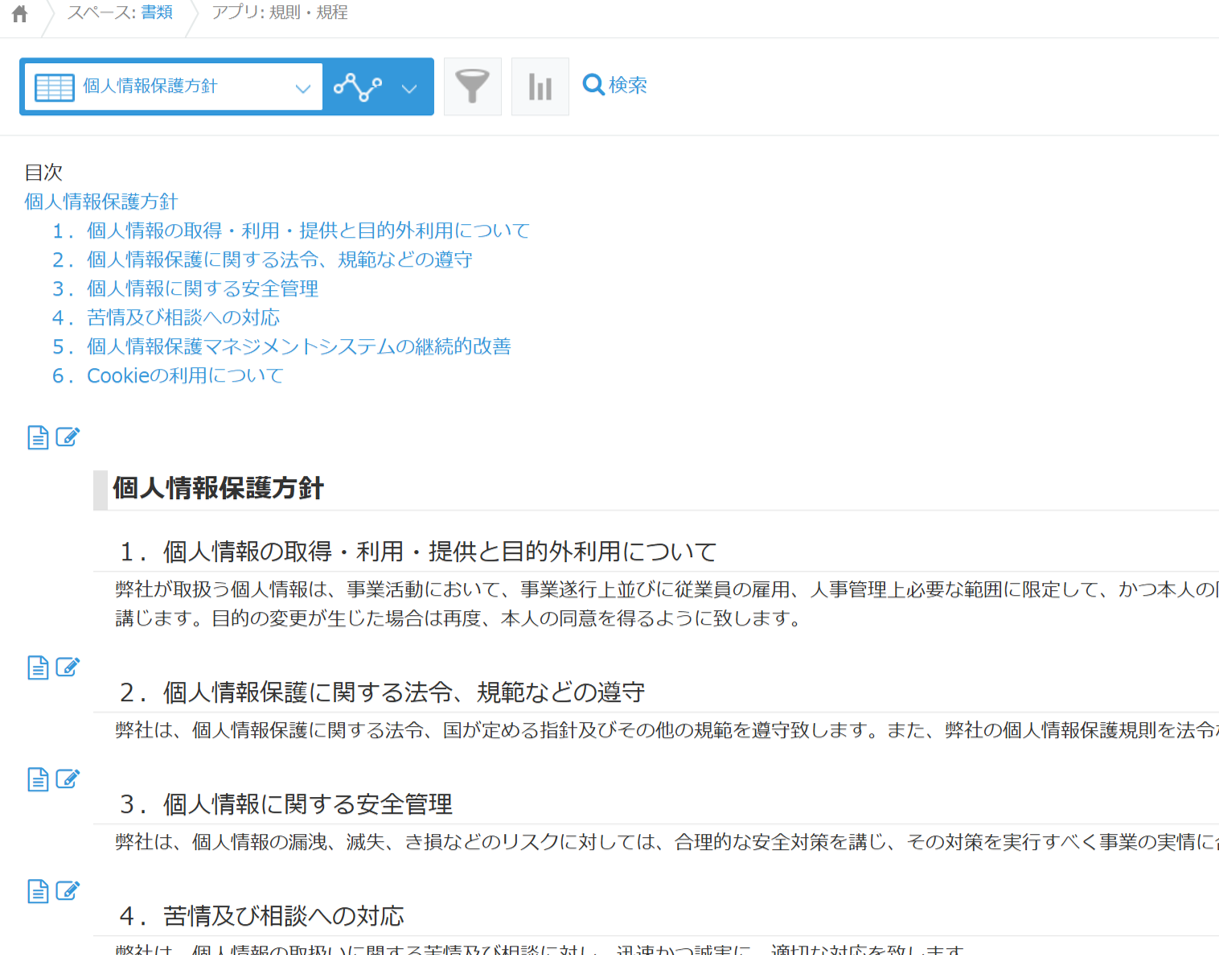 各レコードに記載された情報を結合し1つの文書のように表示。