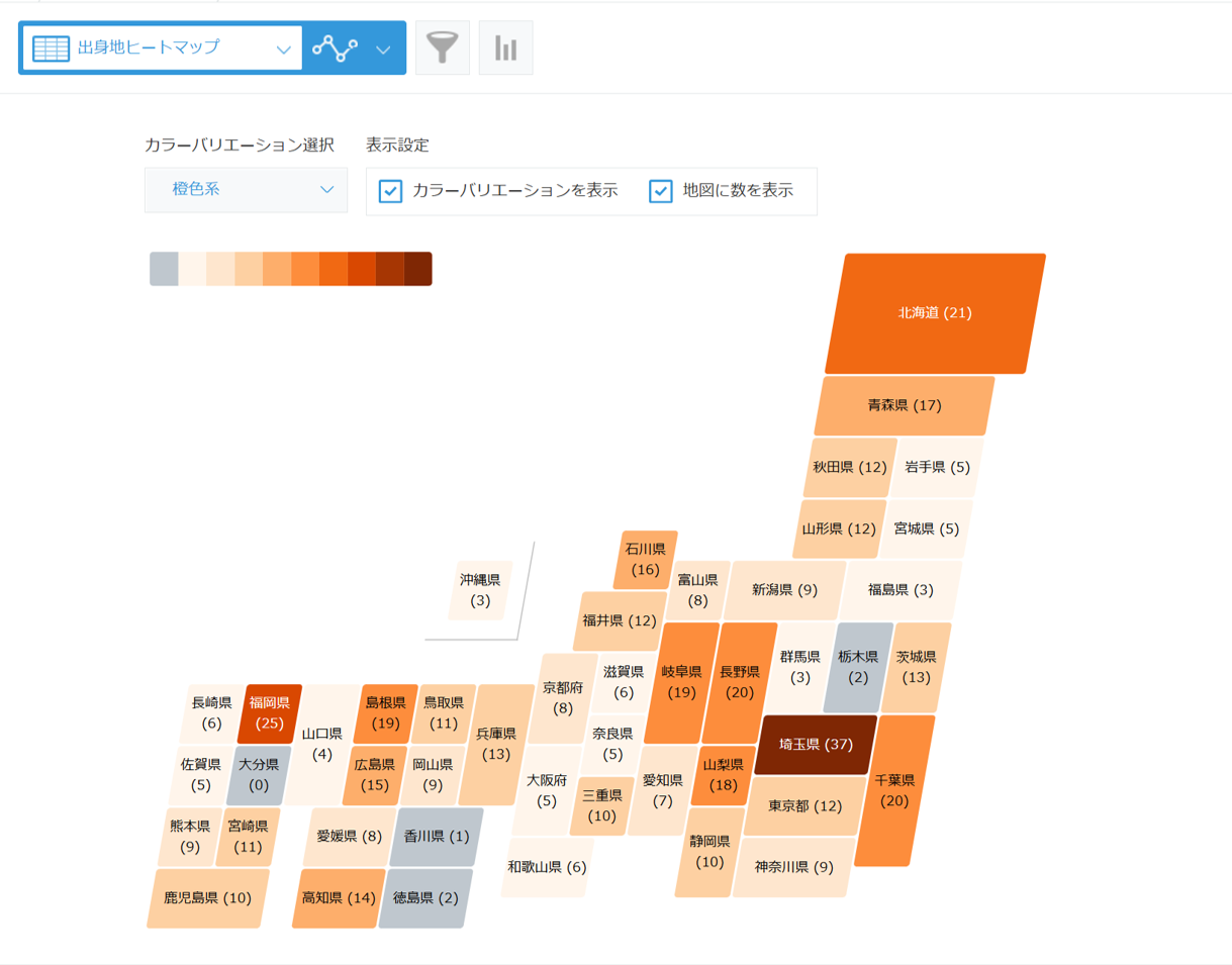kintoneアプリにおける都道府県別レコード数をカウントし、ヒートマップ形式で表示。