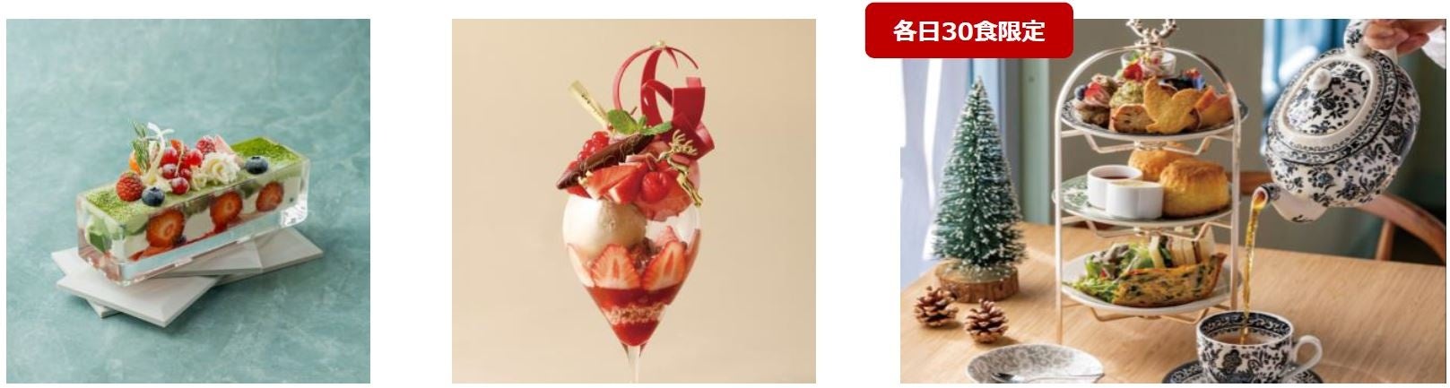 左:クリスマスパフェ 2,310円 林屋新兵衛/2F ※12/1(金)~25(月)限定