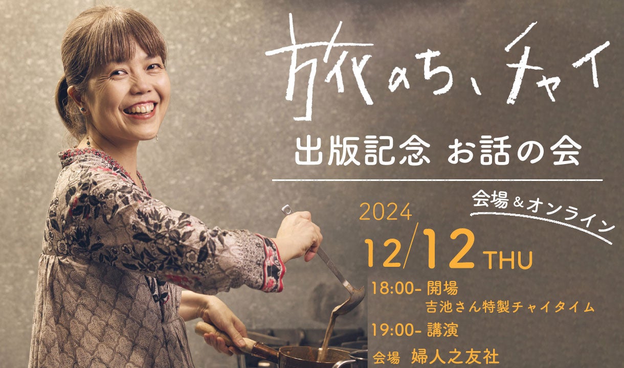 株式会社婦人之友社(本社:東京都豊島区西池袋:代表取締役 入谷伸夫)は、2024 年12月10日(火)、長野の人気チャイ店「mimiLotus(ミミロータス)」店主・吉池浩美 著『旅のち、チャイ』を刊行いたします。