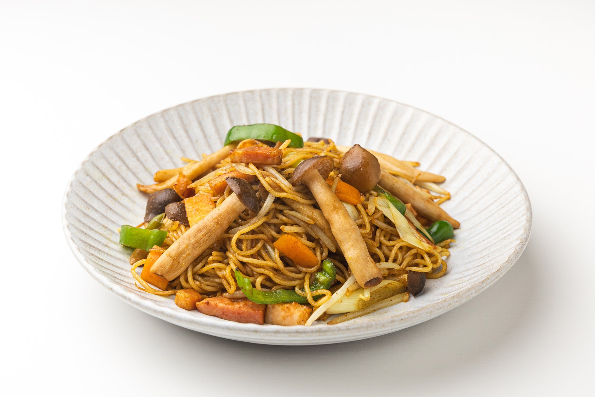 レシピ4 シャキッ!プリッ!食感を楽しむ ぶなしめじ入りカレー風味やきそば
