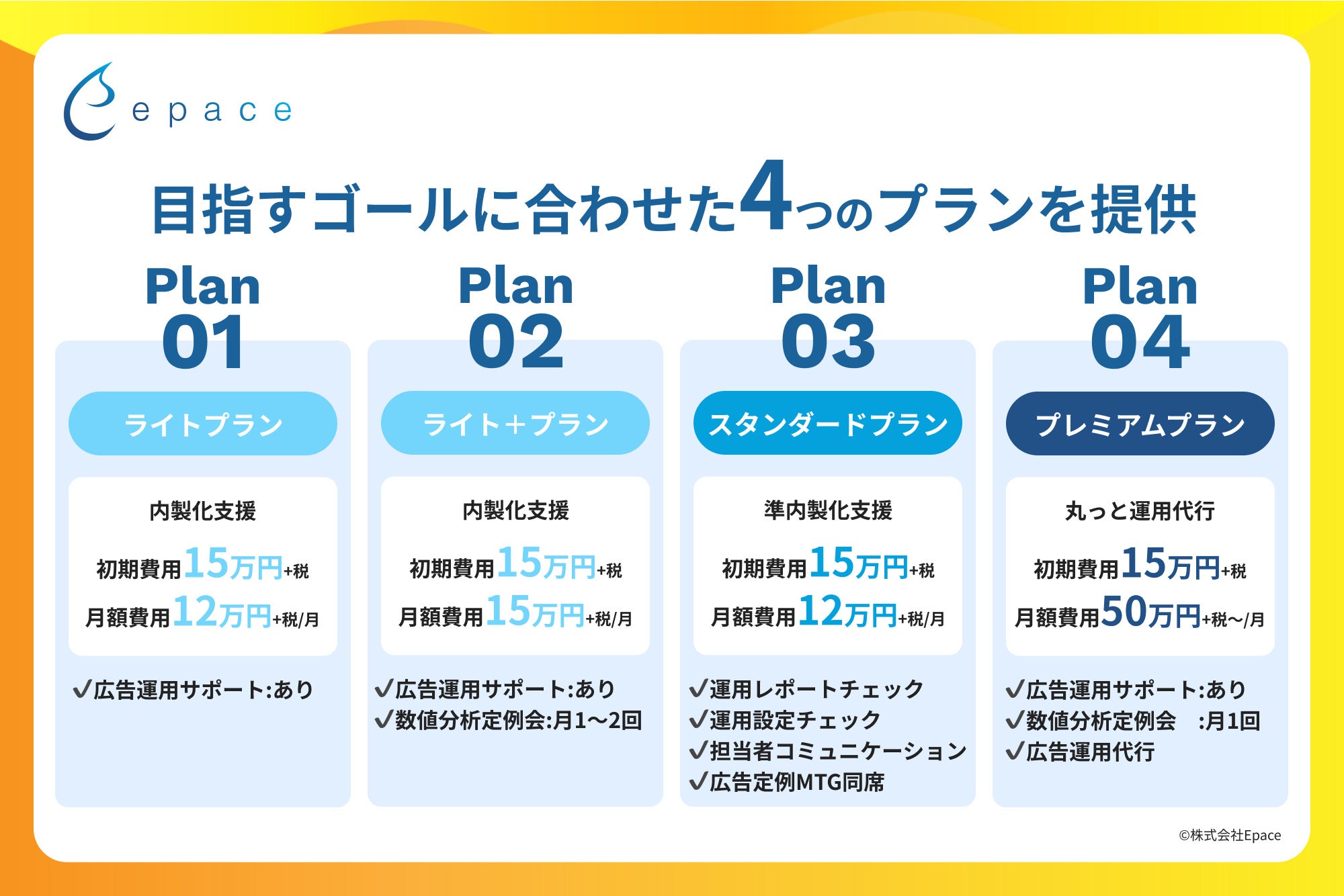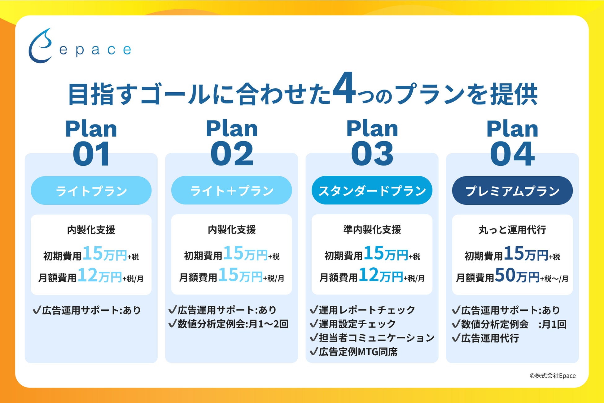 また、4つのプランを用意しているため、事業者様の目的に合わせた最適なプランをご提案させていただきます。