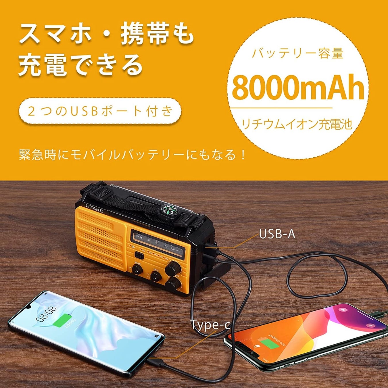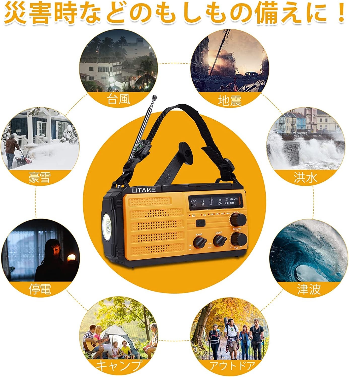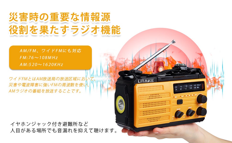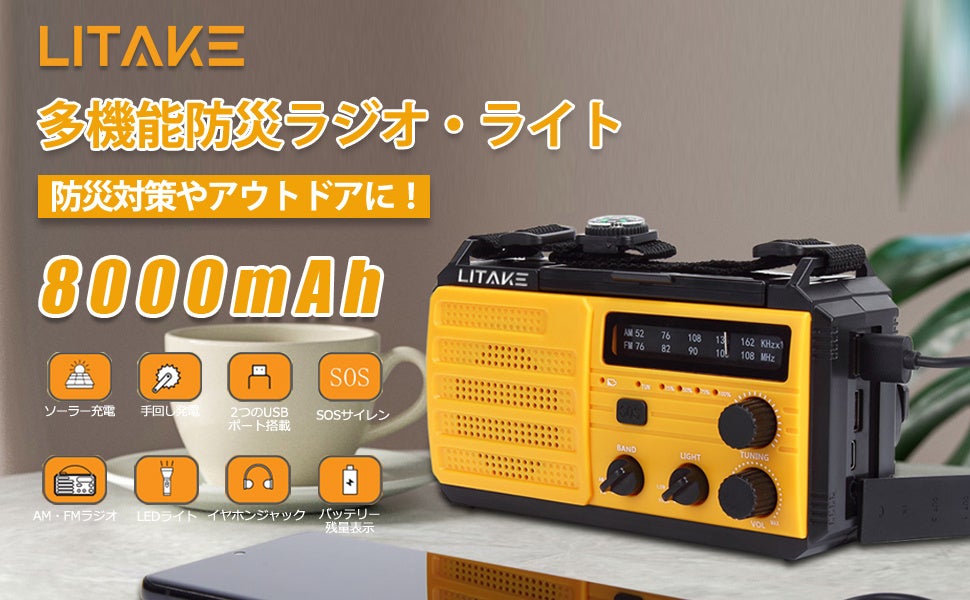 Litake 多機能防災ラジオ LEDライト 8000mAh - 災害時の安心をサポート