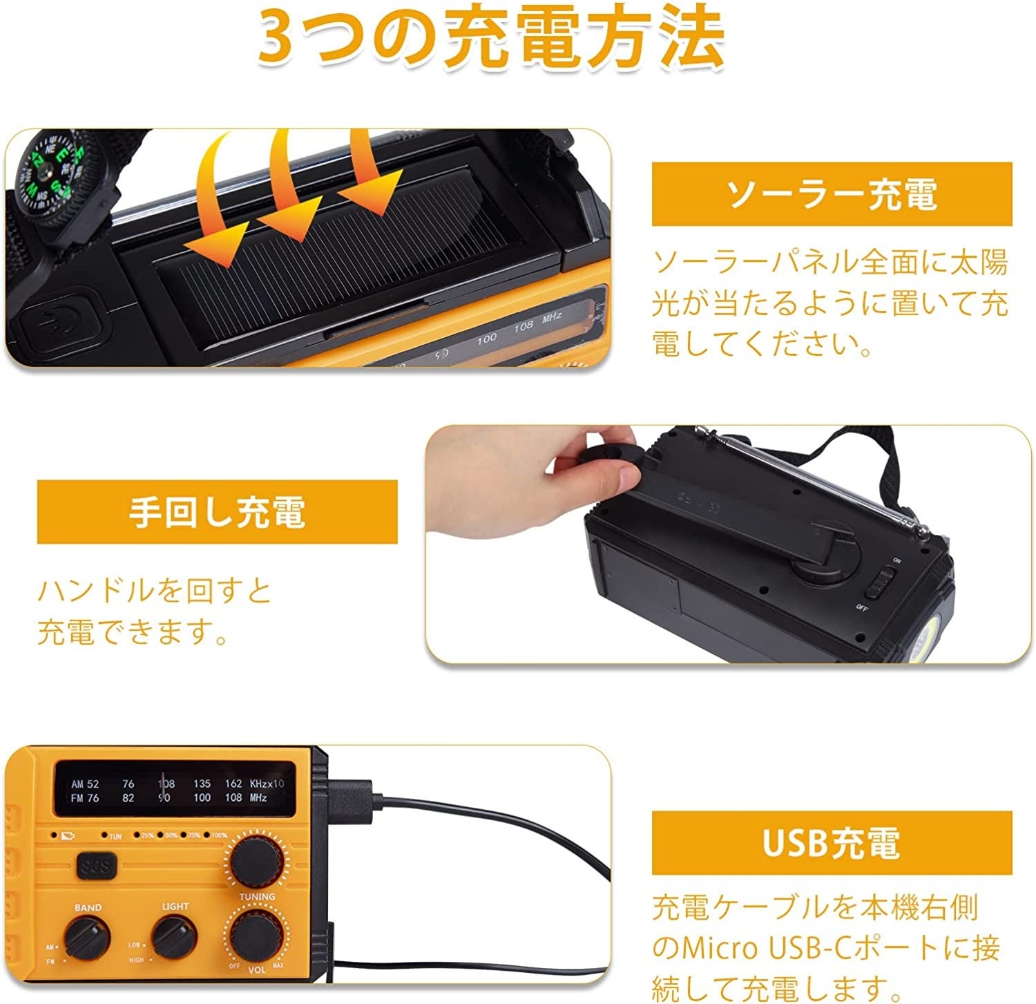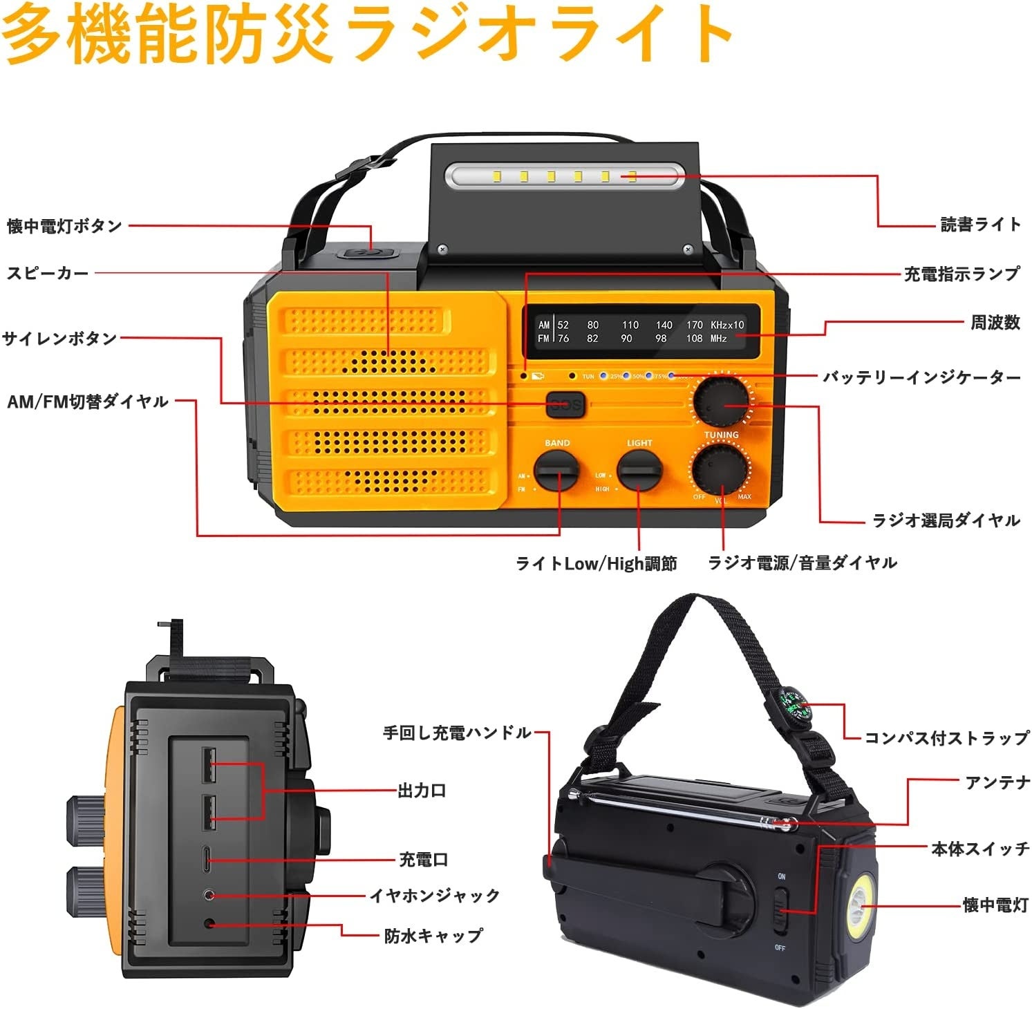 普段使いはもちろん、災害・緊急時の備えとして持っていて便利の多機能ラジオライトです。