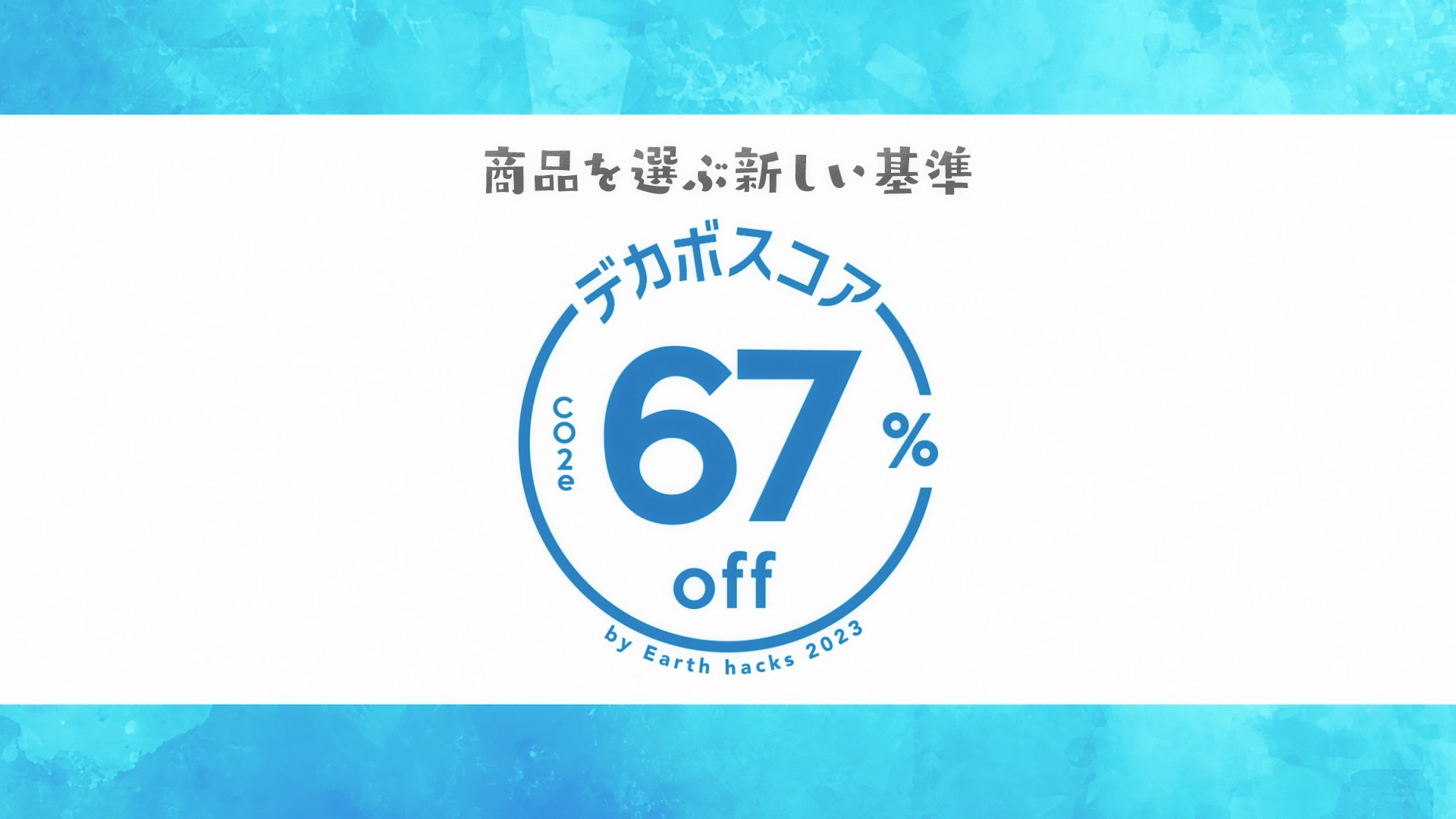 本番組の制作においては、CO₂排出量を減らすための撮影方法の工夫が行われており、Earth hacksが提供する、環境に配慮した商品やサービスにCO2e*1を従来の製品と比較し、削減率(%)を表示する「デカボスコア」*2を通じて、CO2削減量の算出に協力しています。