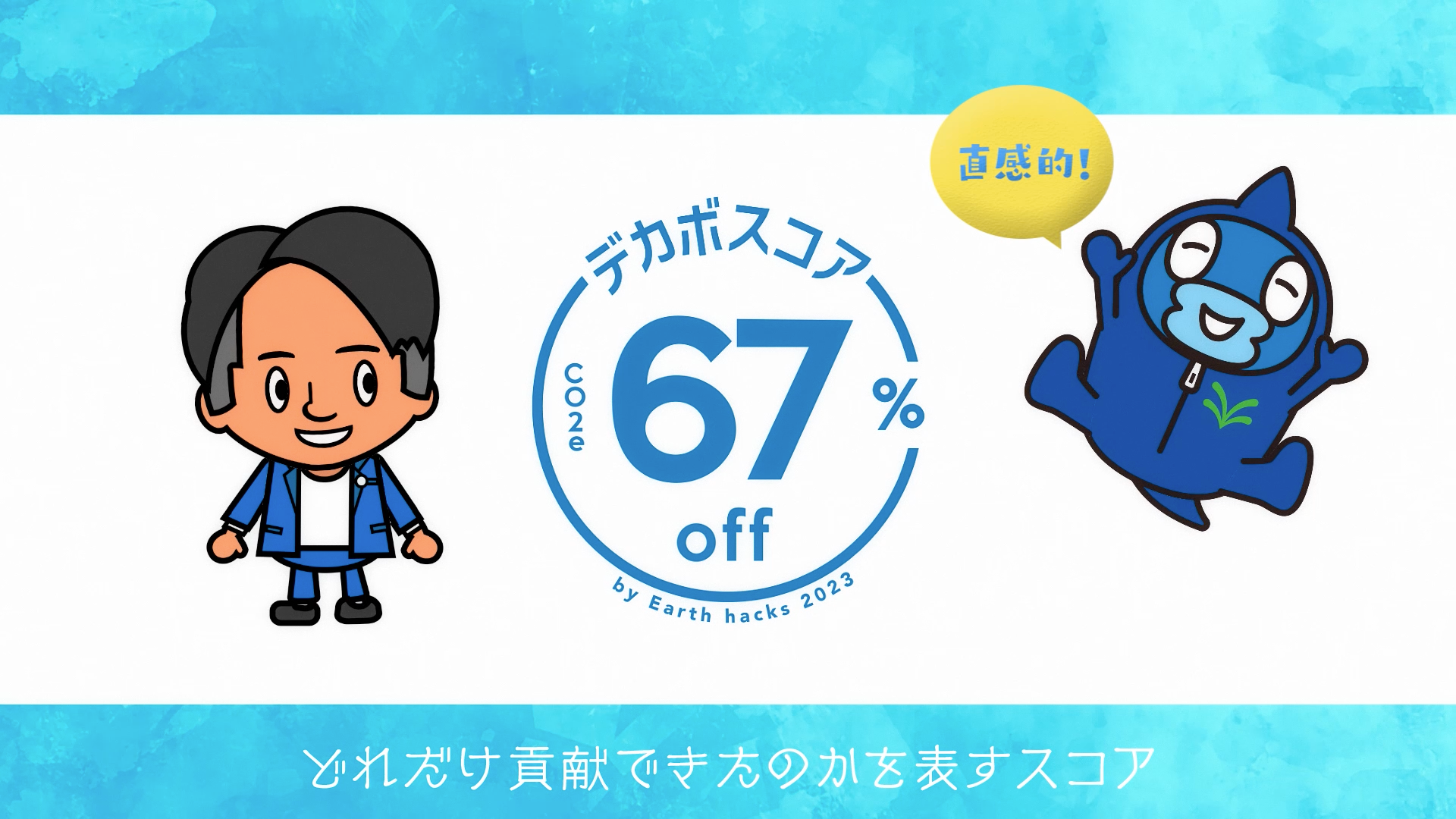 CO2eを従来の製品と比較し、削減率(%)を表示するというユニークなアプローチ「デカボスコア」を企業や団体に提供しています。「Earth hacks」サイト内ではデカボスコアと共に環境価値の高い商品を紹介するなど、企業主体ではなく、Z世代をはじめとした生活者が楽しみながら脱炭素に貢献できる仕組みを提供しています。また、実際のビジネス課題を通じて社会課題の解決を考え、企業と学生が共創するビジネスコンテストプログラム「デカボチャレンジ」も実施し、企業とZ世代の脱炭素社会に資するビジネス共創を促進する取り組みも行っています。他にも、行政・地方自治体に向けソリューションとして「Earth hacks for Local」の提供を開始しています。