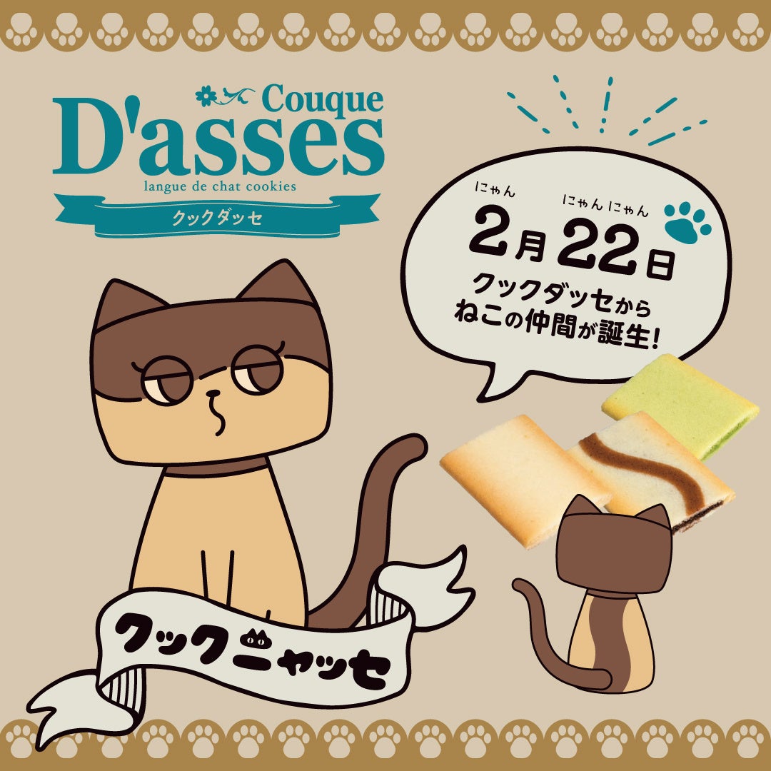 薄焼きラングドシャが特徴で根強いファンも多いロングセラー商品「クックダッセ」。発売から今年で46年目を迎え、商品をイメージした親しみのあるキャラクターを制作いたしました。