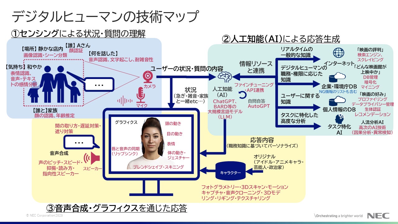 (協議会で提示した、デジタルヒューマンの技術マップ)