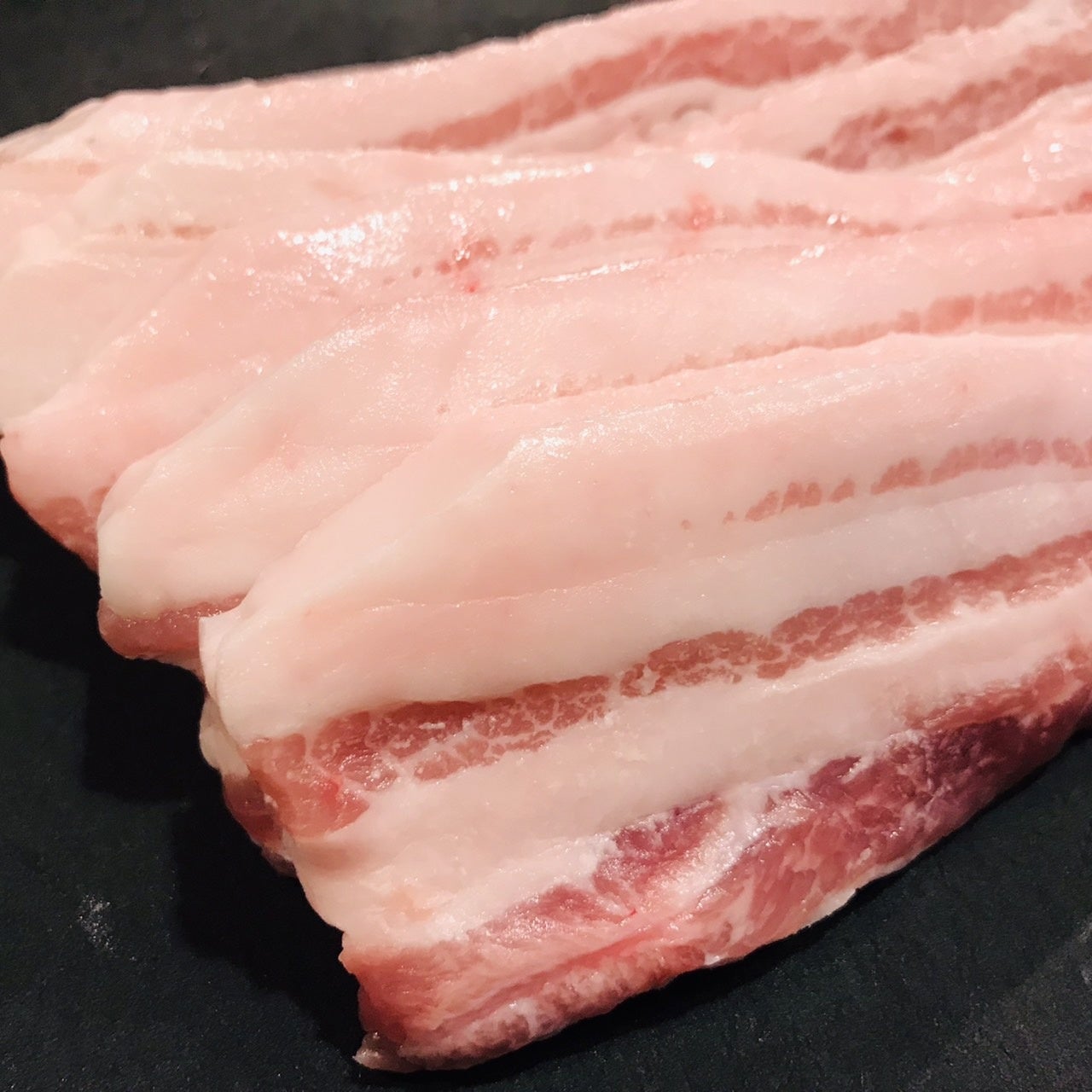 五枚肉・皮付きのバラ肉で香ばしく焼き上がりコラーゲンたっぷりのお肉です。
