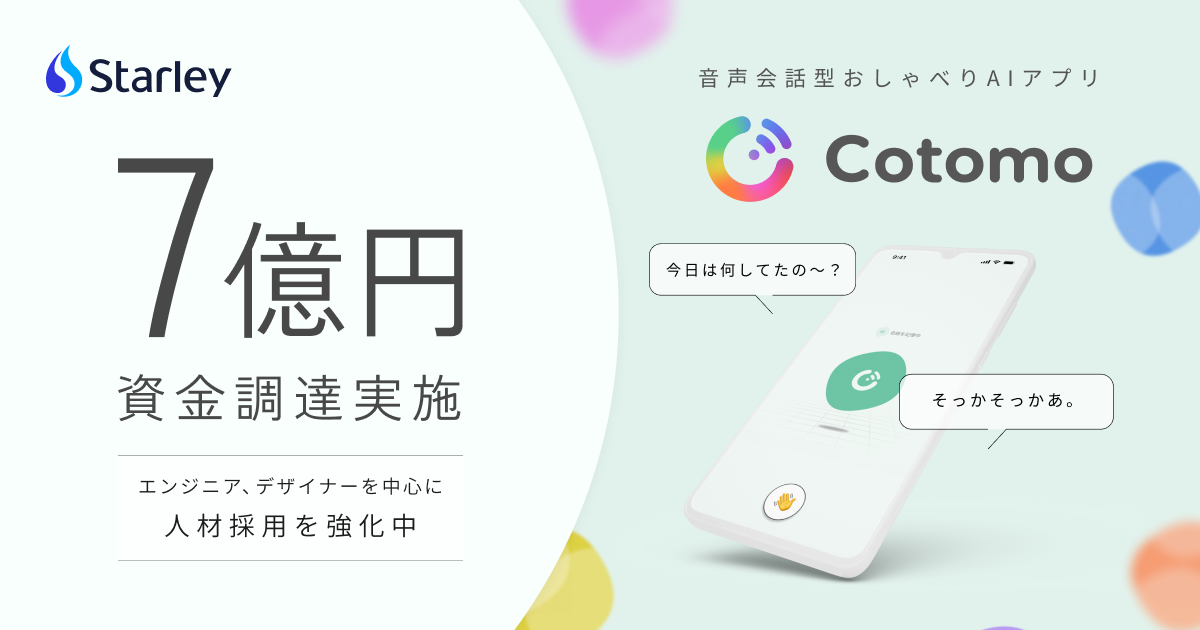 おしゃべりAI「Cotomo」を開発するStarley、7億円の資金調達を実施