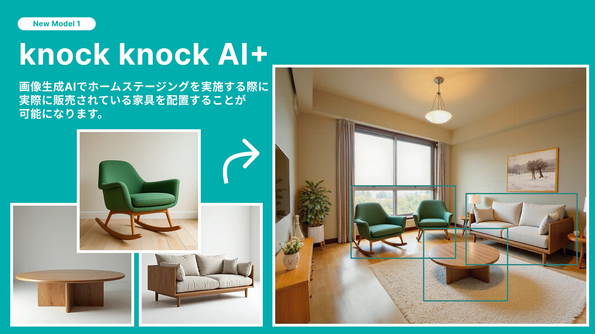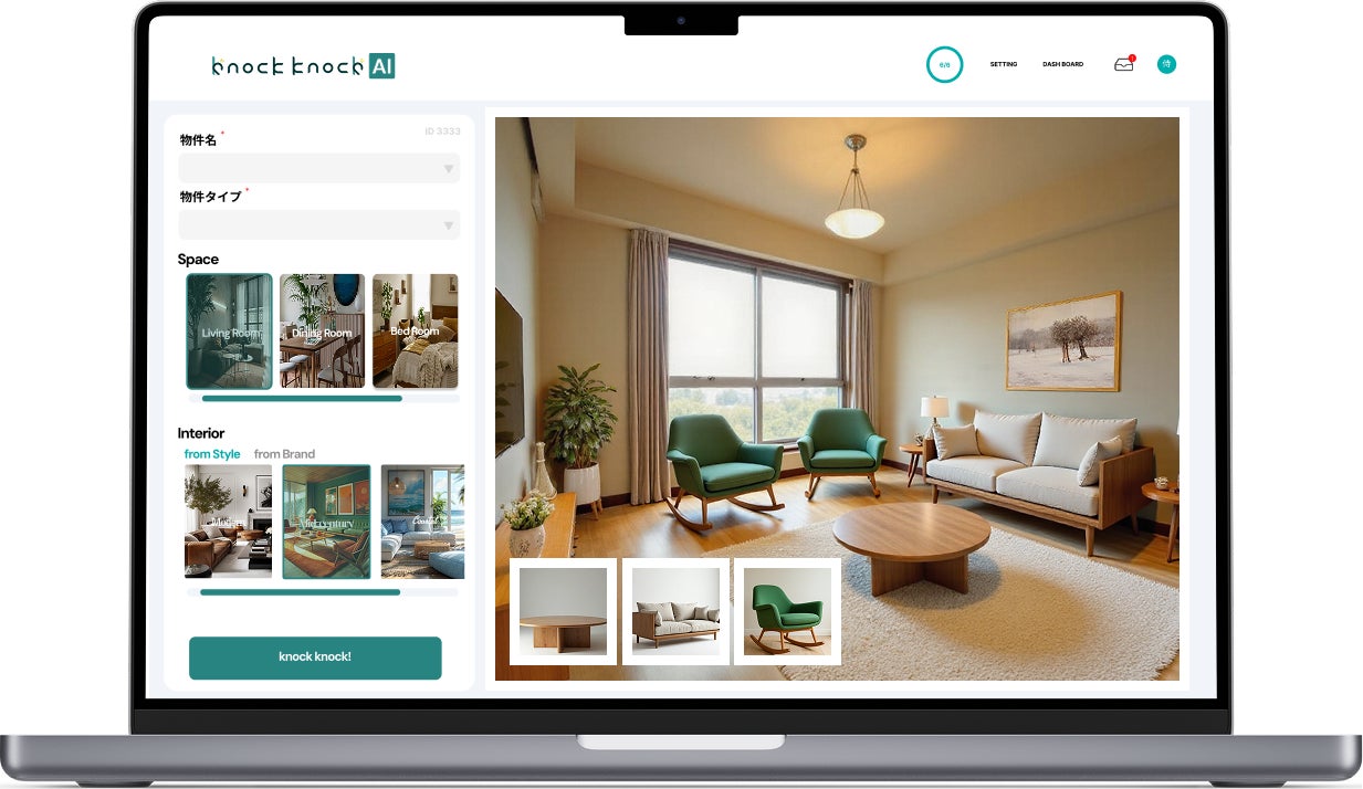 【不動産向けAIサービス】AIホームステージングサービス「knock knock AI」に新機能追加、実在する家具の配置が可能に