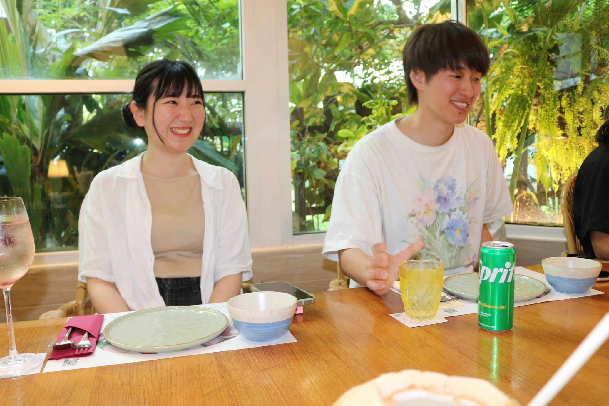 懇親会場は、木々が織りなす緑のカーテンを背にした温室のようなレストラン。そのテーブルでは、タイ料理の鮮やかな色彩と複雑な風味が参加者の五感を刺激します。